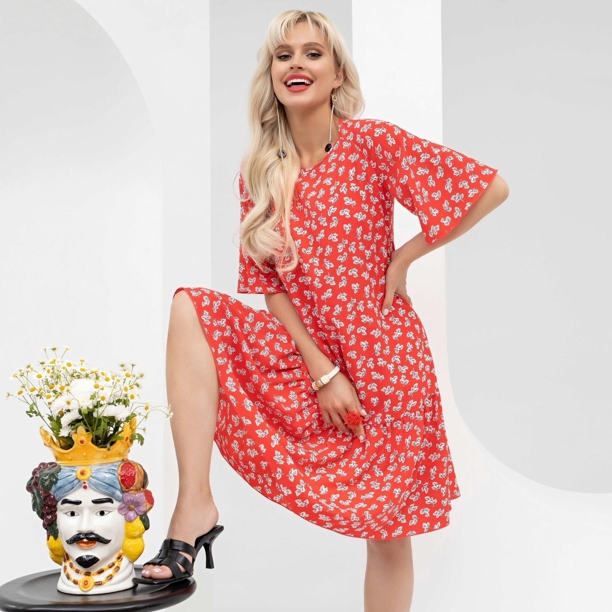 Конфетка! Яркий style в стиле показов Givenchy. Силуэт трапеция: юбка и рукава. Объёмная лёгкая ткань струится и стройнит. В этом платье ты будешь акцентом на любом мероприятии.