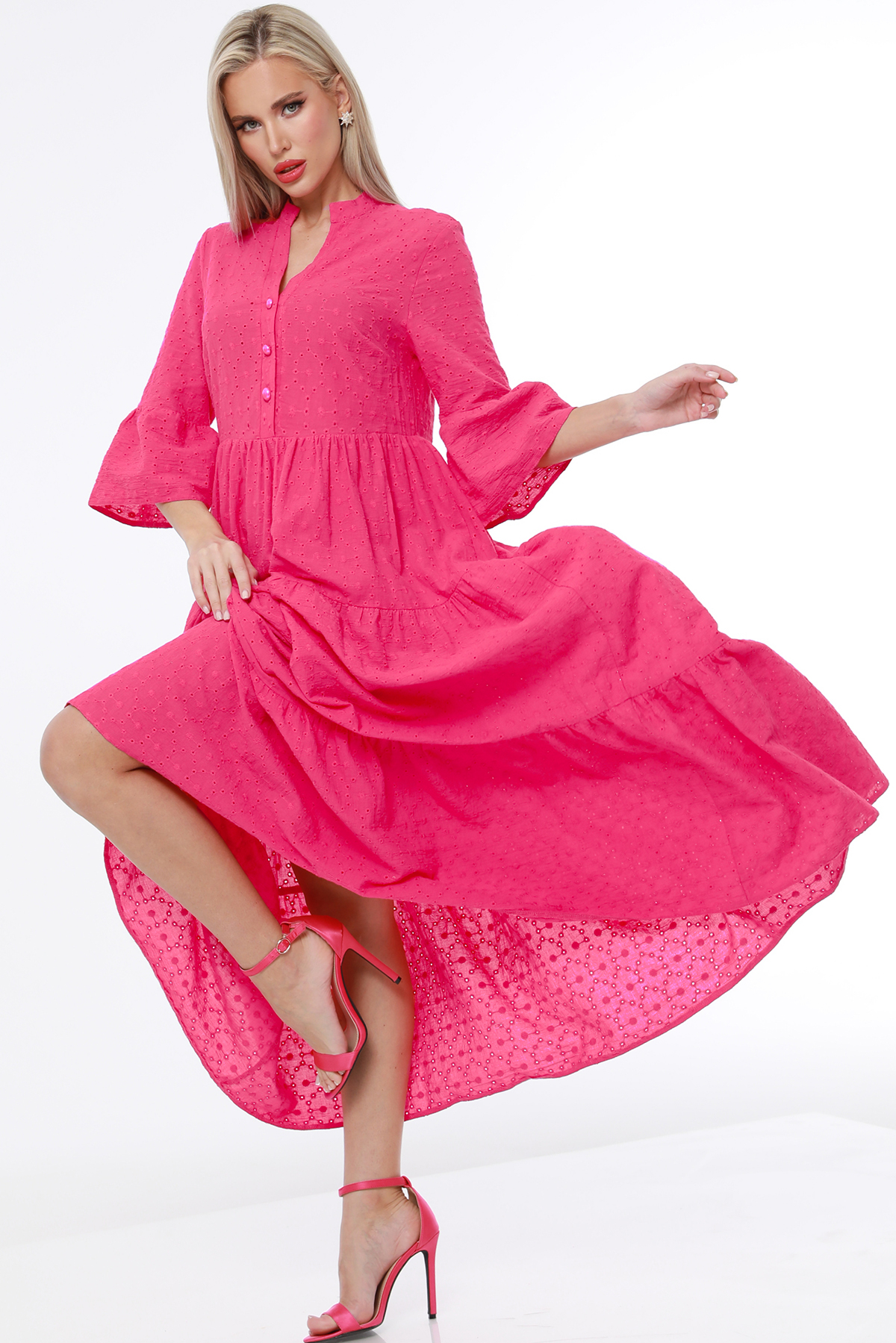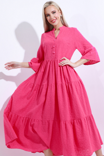 Летнее яркое длинное платье — это идеальный выбор для тех, кто ценит стиль и комфорт в повседневной одежде. Платье выполнено из плательной ткани, которая обеспечивает легкость и воздухопроницаемость, что особенно важно в жаркие летние дни. Основной особенностью этого платья является его яркий и насыщенный цвет, который привлечет внимание и поднимет настроение. Оно идеально подходит для повседневного ношения, создавая легкий и непринужденный образ. Плательная ткань приятна на ощупь и обеспечивает комфорт на протяжении всего дня. Воротник-стойка добавляет нотку утонченности и прекрасно сочетается с общим стилем платья. Модель платья выполнена в А-силуэте, который является одним из самых универсальных и популярных силуэтов. А-силуэт подчеркивает талию и плавно расширяется к низу, создавая женственный и романтичный образ. Такой крой подходит для всех типов фигур, делая платье доступным и комфортным выбором для каждой женщины. Рукава длиной 3/4 добавляют платью элегантности и утонченности. Для ухода за этим платьем рекомендуется бережная стирка при температуре 30 градусов.