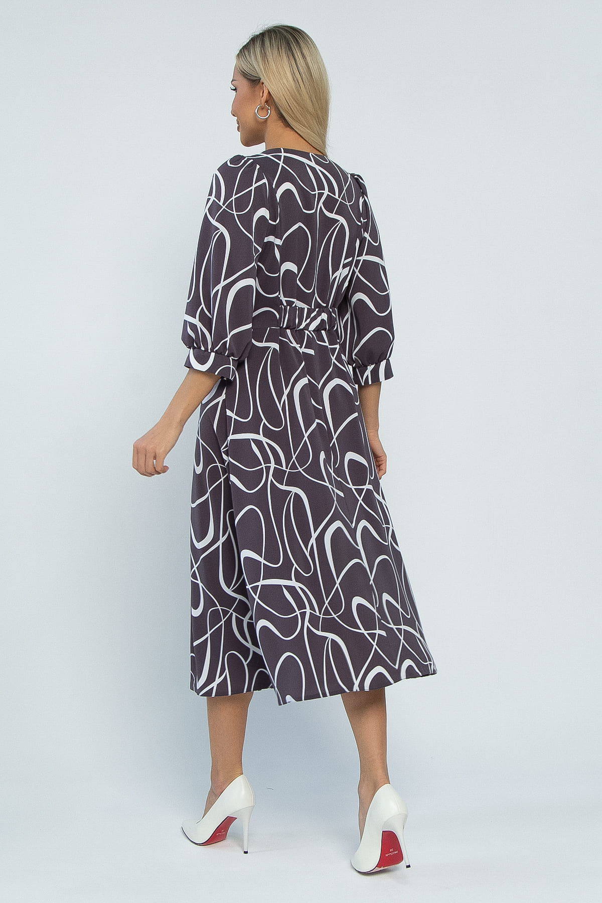 Платье средней длины с приталенным силуэтом станет настоящим украшением вашего гардероба! Благодаря отрезной линии талии оно подчёркивает фигуру, а расклешенная юбка придаёт образу лёгкость и женственность. Рукав-реглан средней длины на сборке завершается изящным манжетом, что делает платье ещё более утончённым. V-образная горловина добавляет в образ нотку изящества. Спереди платье украшено декоративным элементом в виде сборки, которую аккуратно закрывает втачной пояс. Сзади пояс аналогичный и собран на широкую резинку.