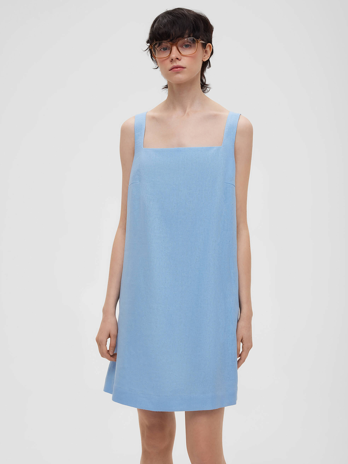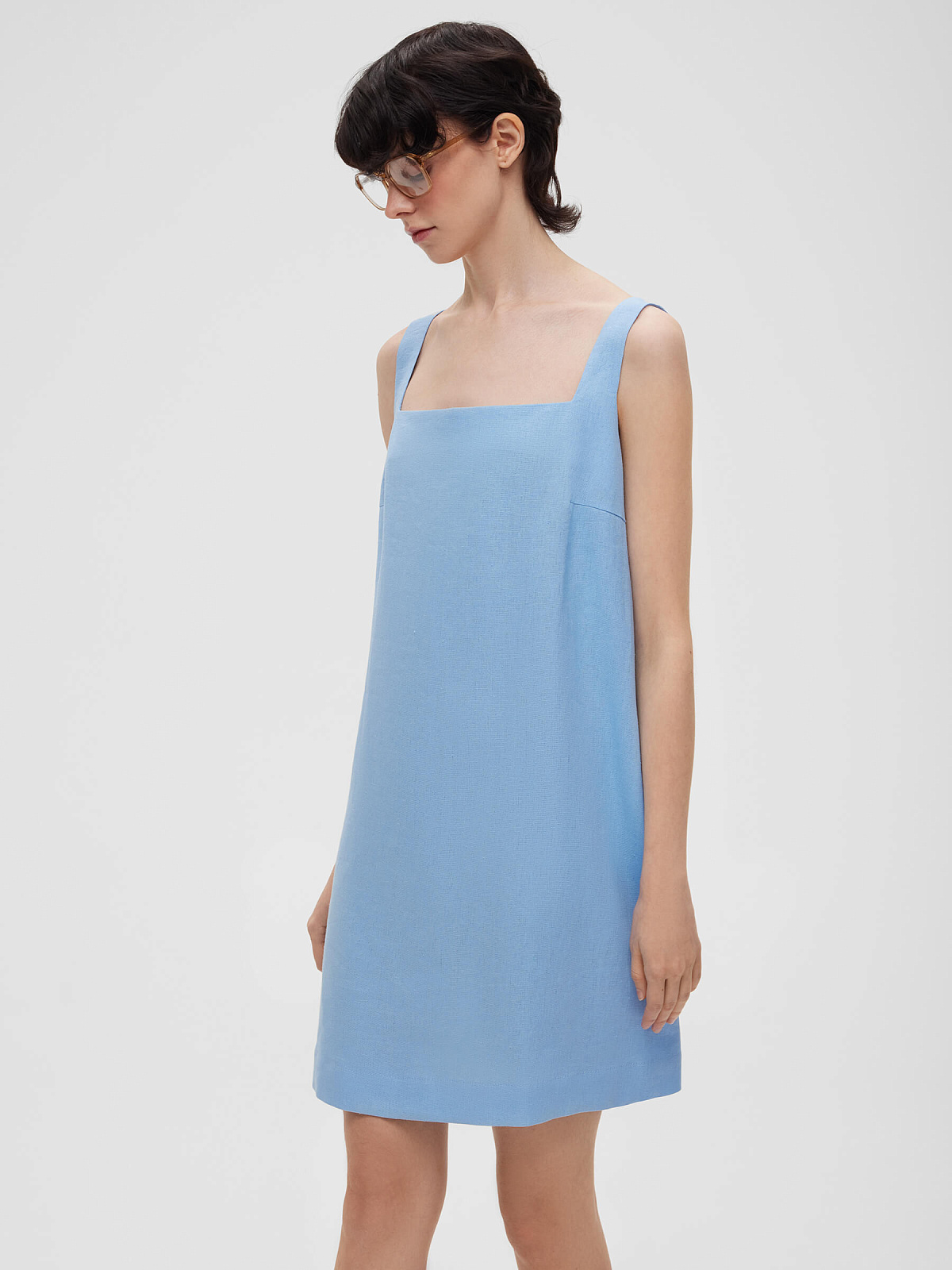 2463р4925рПлатье мини из льняной ткани 0191, голубой