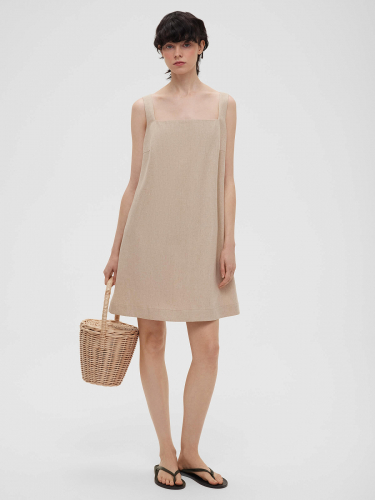 2463р4925рПлатье мини из льняной ткани 0191, светло-коричневый