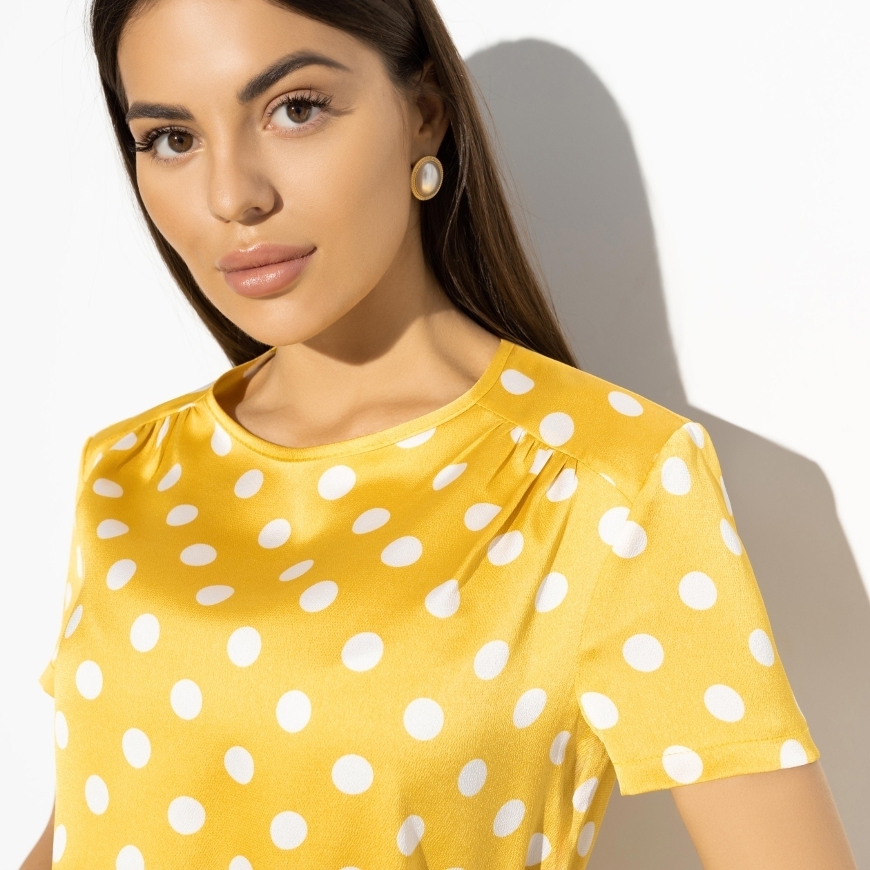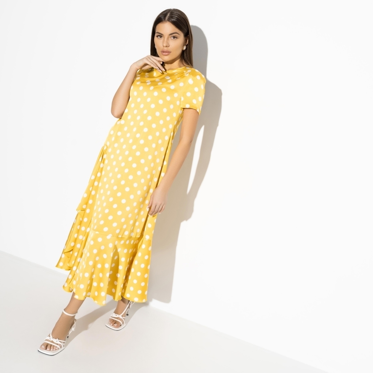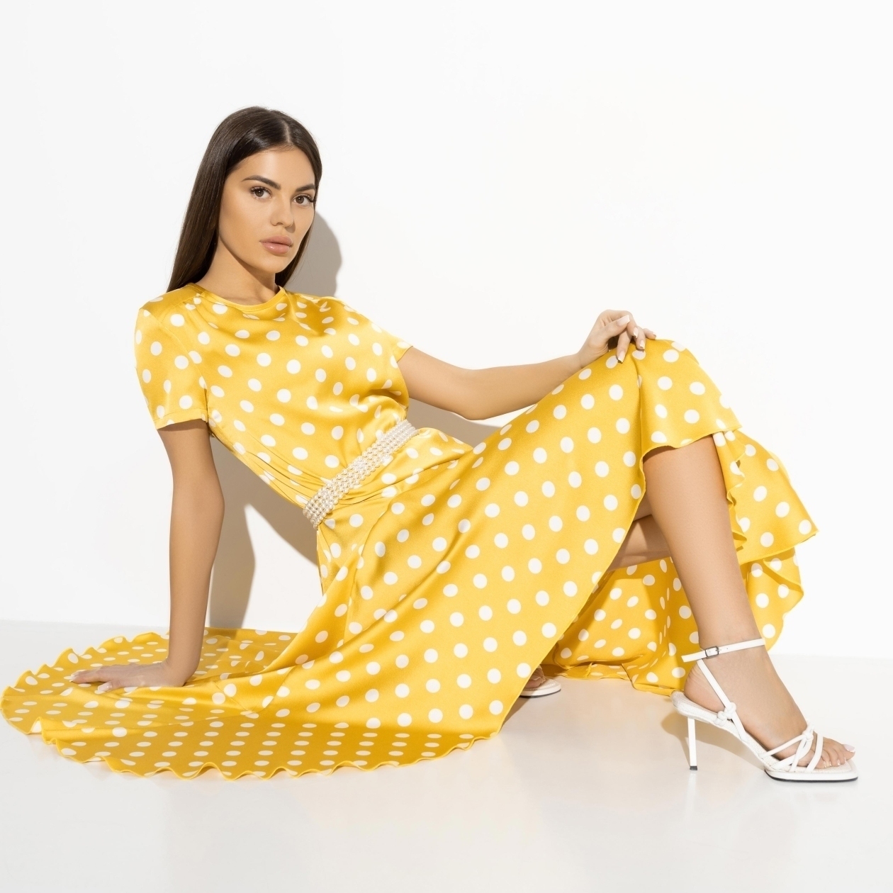 Платье «Модный импульс (smile energy)» — это не просто одежда, это воплощение фантазий и ощущение свободы при каждом шаге. Изготовленное из уникальной плательной ткани «бабл-сатин», оно поражает своими воздушными линиями и нежным шелковистым блеском. Каждый кружок на ткани рассказывает свою историю, заключенную в загадочные предсказания, которые обязательно сбудутся. Оптом приобретая эти фантастические платья, вы обеспечите себя и своих клиентов не только стильным гардеробом, но и волной позитива, которая использует моду как проводник энергии.