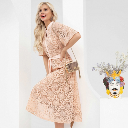 Брависсимо! Кружева - ультрамодный тренд сезона 2022 по версии Bazaar. Длина maxi в сочетании полупрозрачной фактурой создают интригу. Мы добавили акцент на пояс и модель заиграла. Блеск!