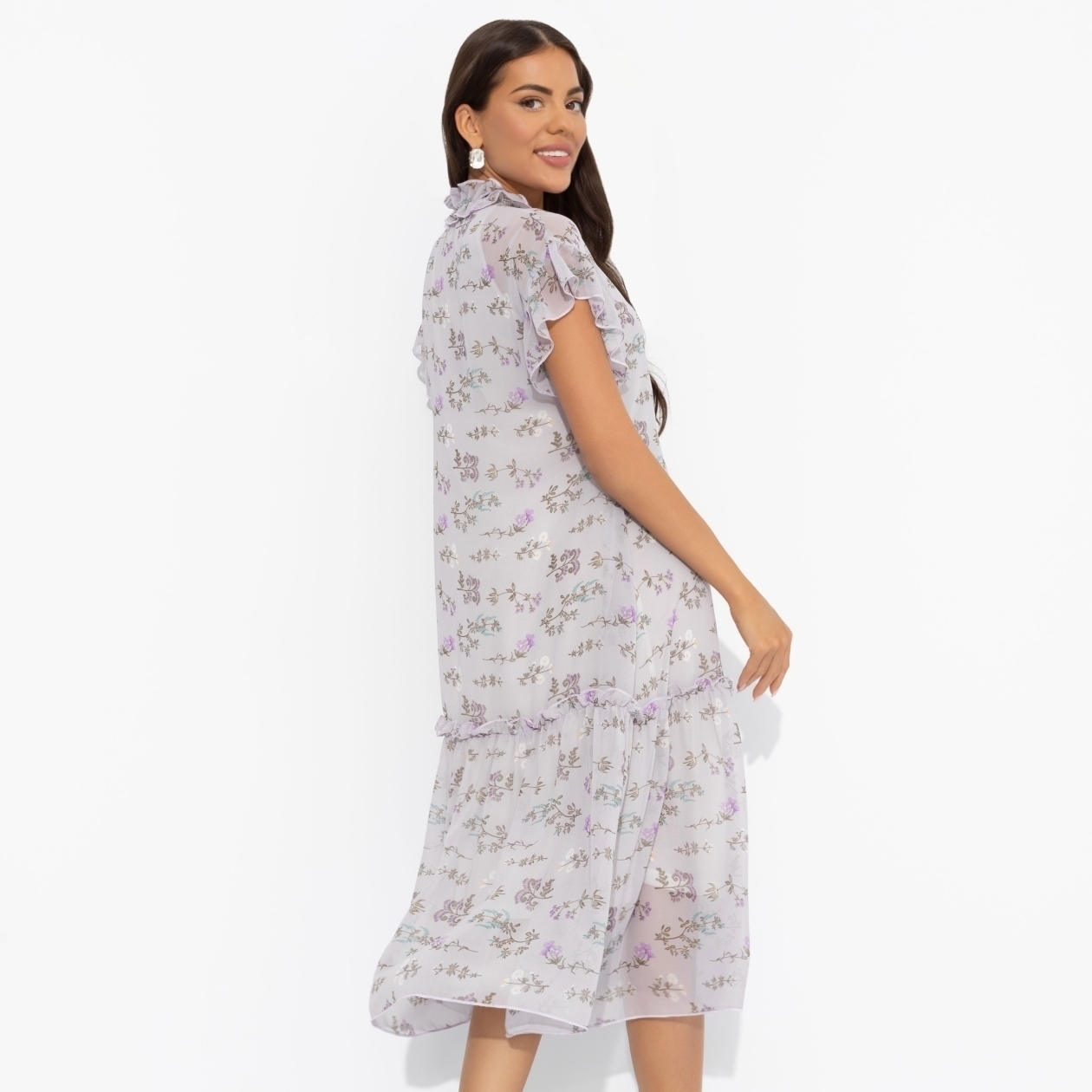 «Невидимый магнетизм» делает свою работу тихо. Но на 100%. Романтичный принт, лёгкий силуэт и эффект: почему все оборачиваются? Платье в длине миди. Лаконичные рюши на рукавах изделия и в зоне ворота. Платье с подкладом. За счет кроя изделие отлично смотрится на любом типе фигуры.