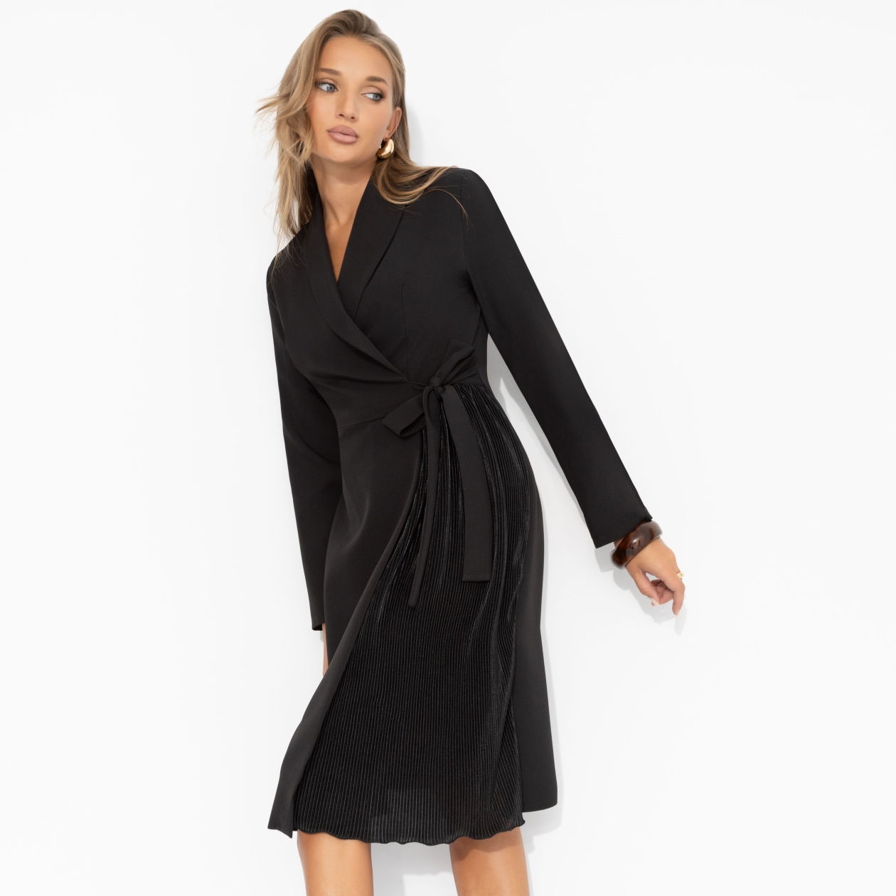 Элегантное платье от ЧАРУТТИ – идеальное решение для насыщенного дня, когда родительское собрание сменяется романтическим свиданием. Его лаконичный силуэт подчеркивает фигуру, не облегая навязчиво. Универсальный глубокий черный цвет и изящные линии создают образ собранный и строгий для школы, но в то же время загадочный и чувственный для вечера. В этом платье вы будете неотразимой мамой днём и очаровательной женщиной вечером, совершив безупречный переход в одной вещи. Платье в длине миди на запах. Приталенный силуэт формируется за счёт пояса. Платье с лацканами. Часть юбки выполнена из акцентного текстурного материала-гофре. Пояс вшит в изделие.