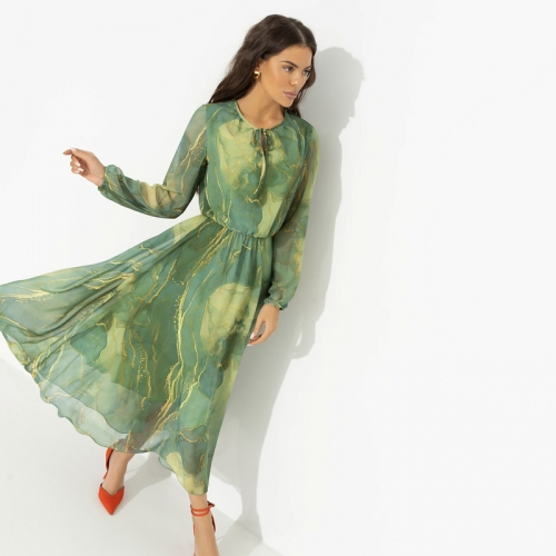 Погрузитесь в мир изысканной элегантности с платьем «Летящие мгновения (green)» от CHARUTTI, выполненным из нежного шифона-монако и масла. Это вечернее платье женское станет вашим незаменимым спутником на любом важном событии. Оно очаровывает своей приталенной силуэтной линией и изысканной длиной миди, создавая неповторимый образ. Скрытая тонкая резинка на талии обеспечит идеальную посадку, подчеркивая ваши достоинства. Мягкий подклад добавляет комфорта, а тонкие завязки в зоне декольте придают платью особую нотку изящества. Мы уверены, что это платье станет вашим любимым выбором для вечерних выходов.