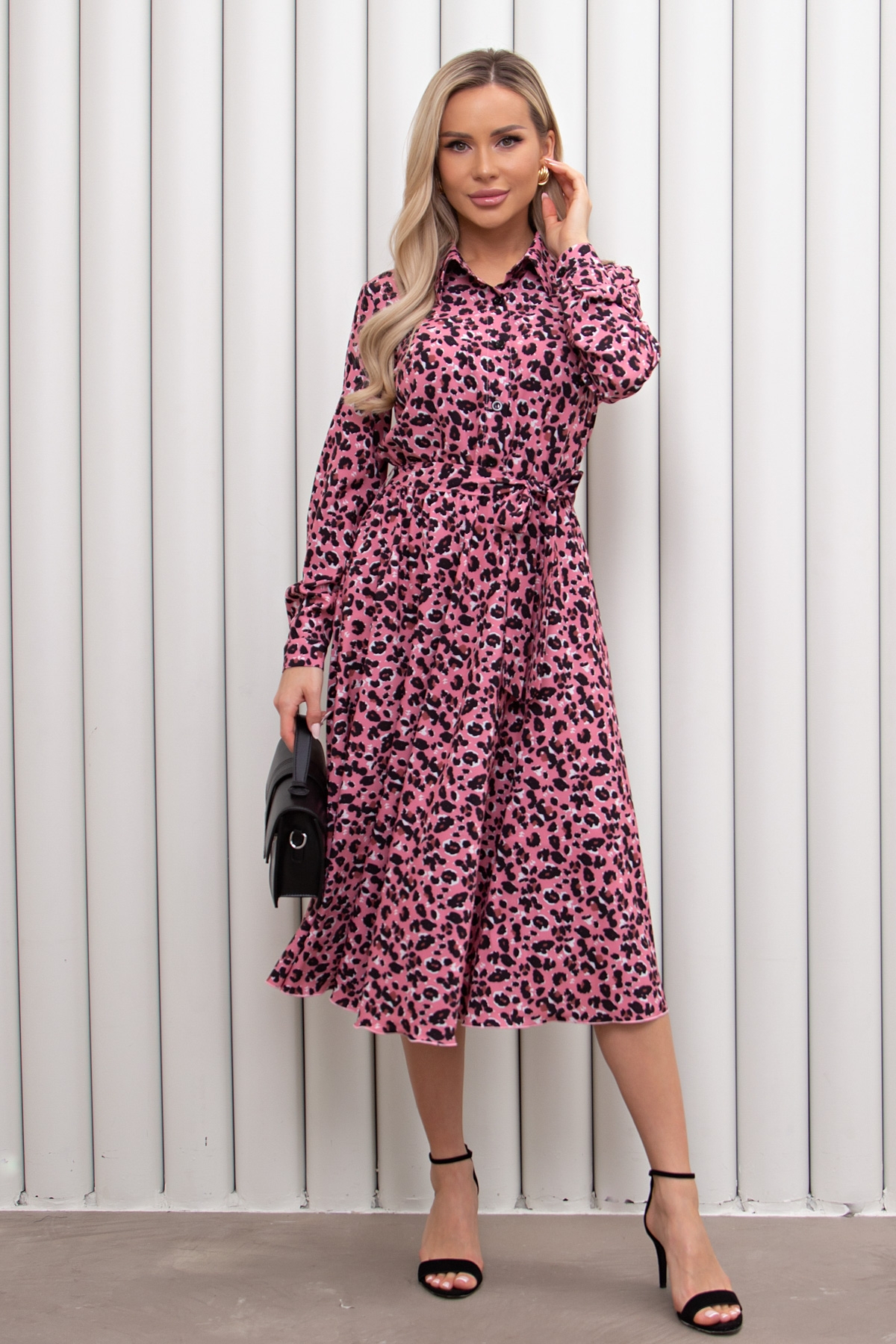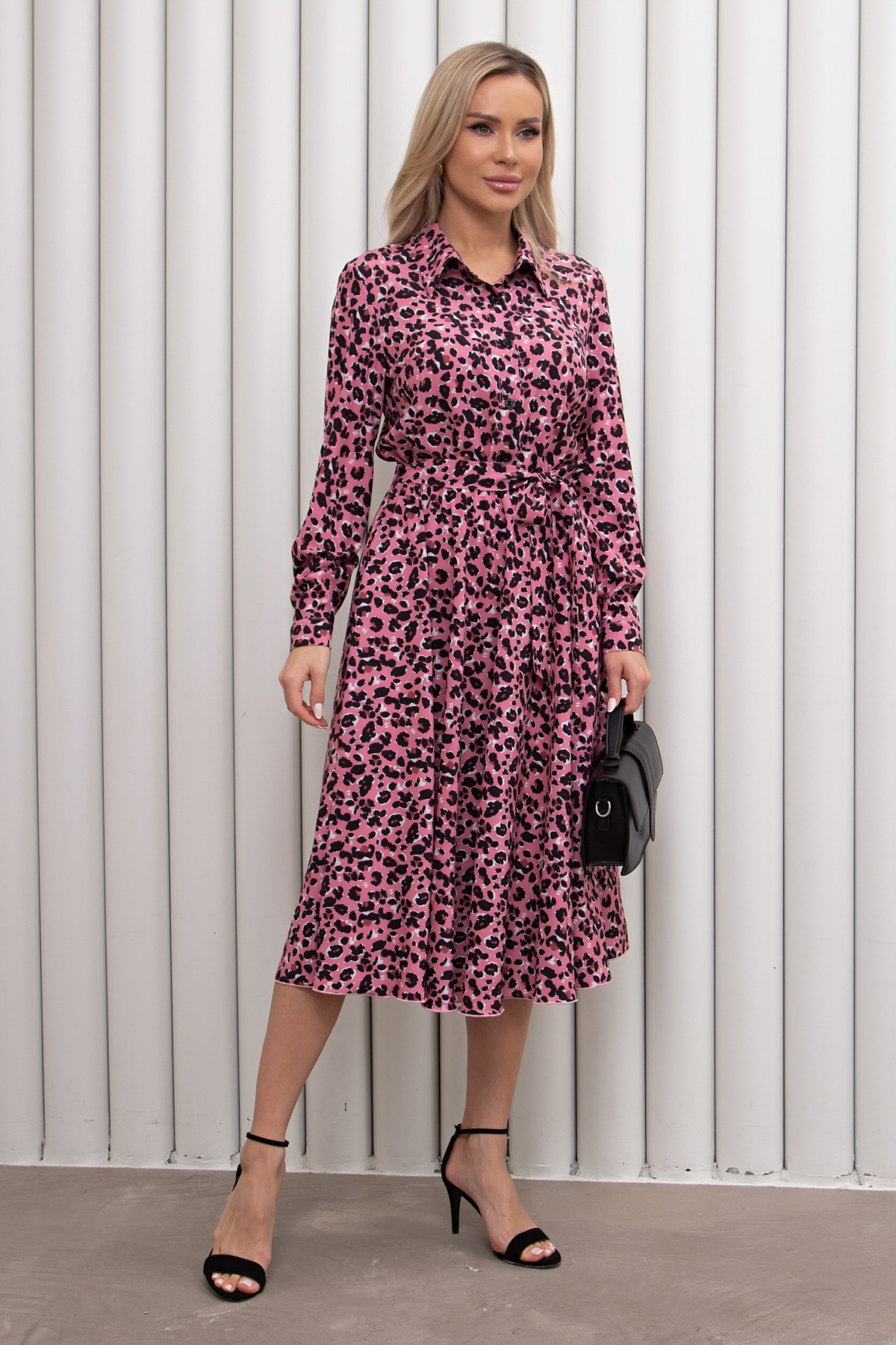 Красивое платье приталенного силуэта из легкой ткани - ниагара. Горловина оформлена отложным воротником на стойке. По переду выполнена планка с застежкой на петли и пуговицы. Длинный втачной рукав, оканчивается притачной манжетой. В боковых швах функциональные карманы. Модель отрезная по линии талии, присобрана на эластичную резинку. Тканевый пояс дополнительно акцентирует талию. Модель прекрасно дополнит ваш гардероб.