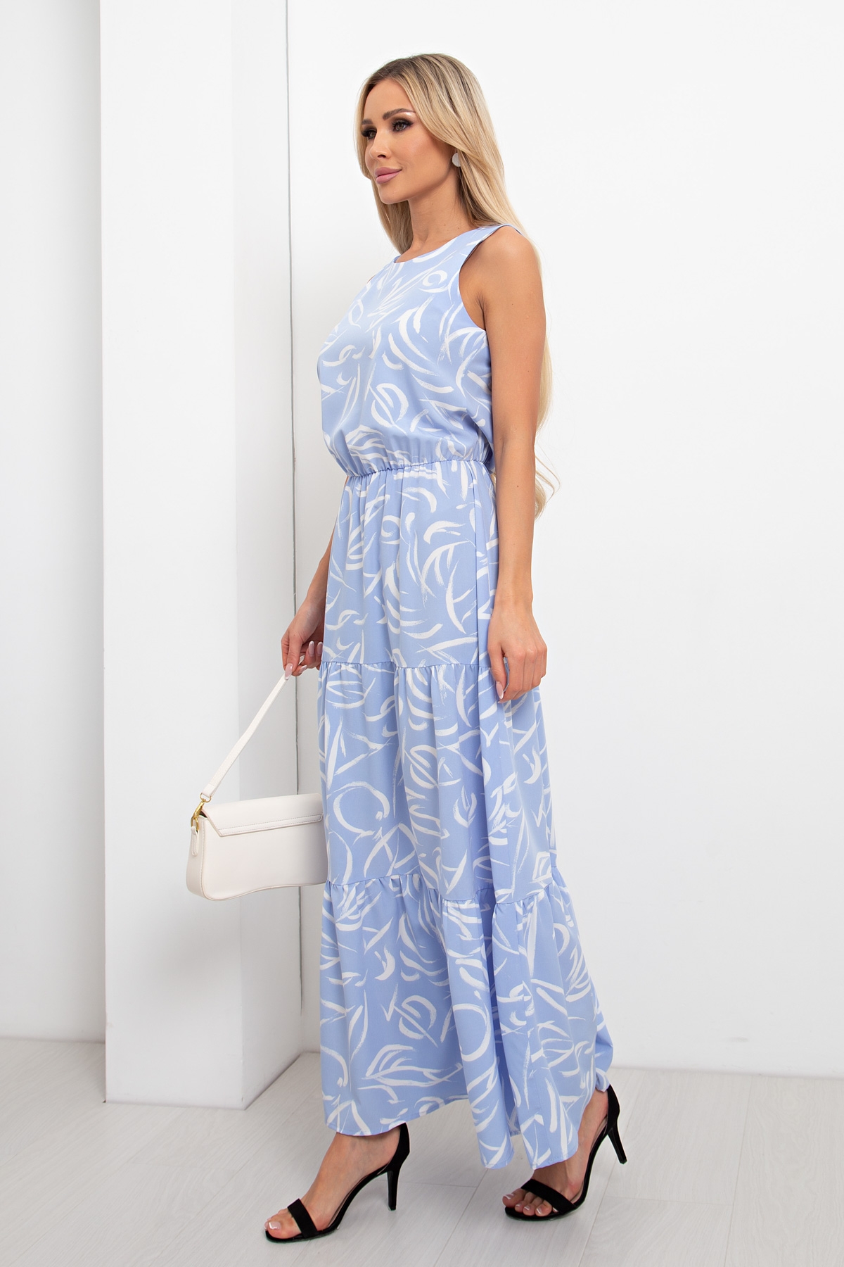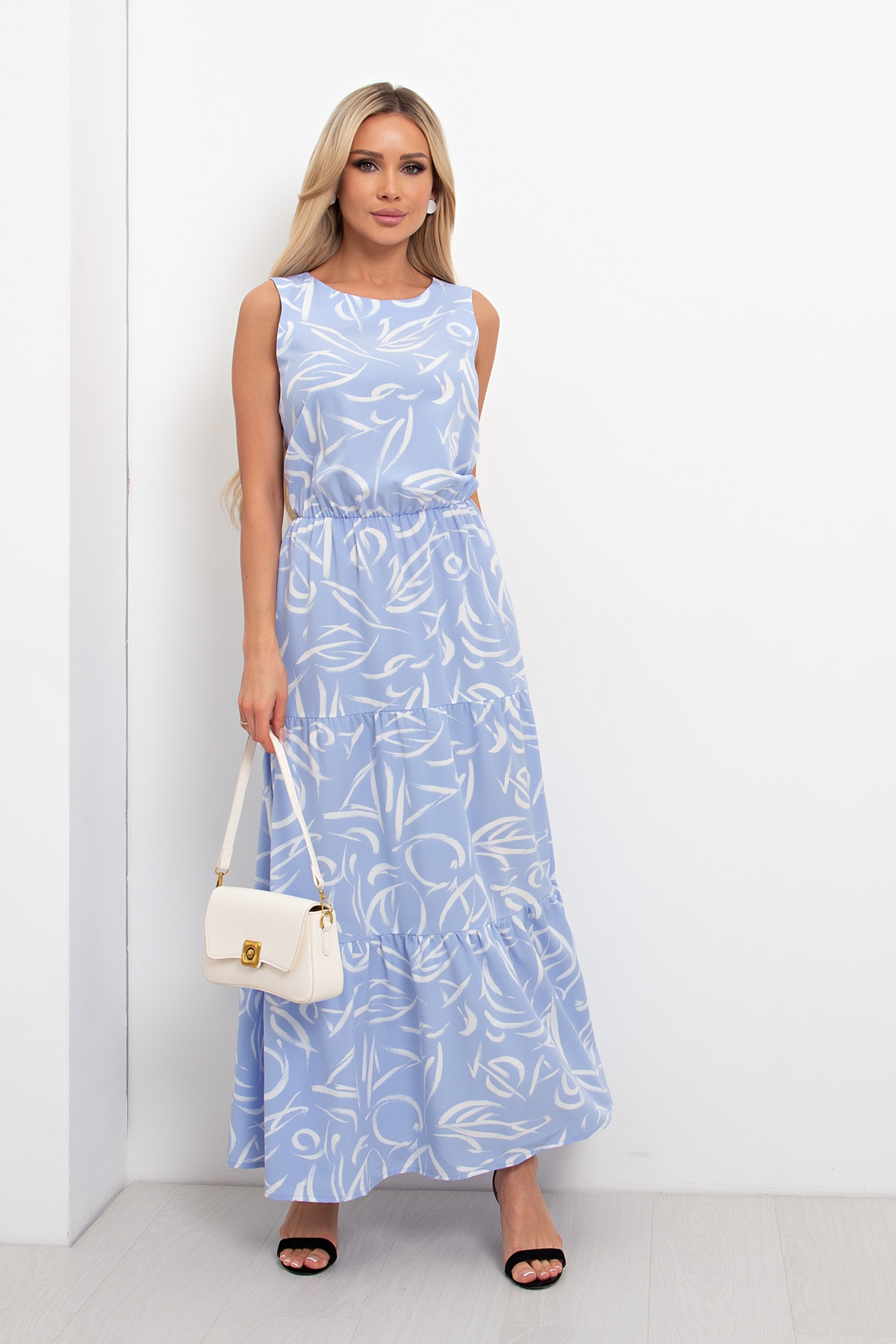 Комфортное летнее платье приталенного силуэта выполнено из легкой ткани Ниагара. Округлая горловина и проймы на внутренней обтачке. Модель отрезная по линии талии, присборена на эластичную резинку. Юбка состоит из трех ярусов на сборке. Юбка состоит из трех ярусов на сборке. Низ ровный, без разрезов.