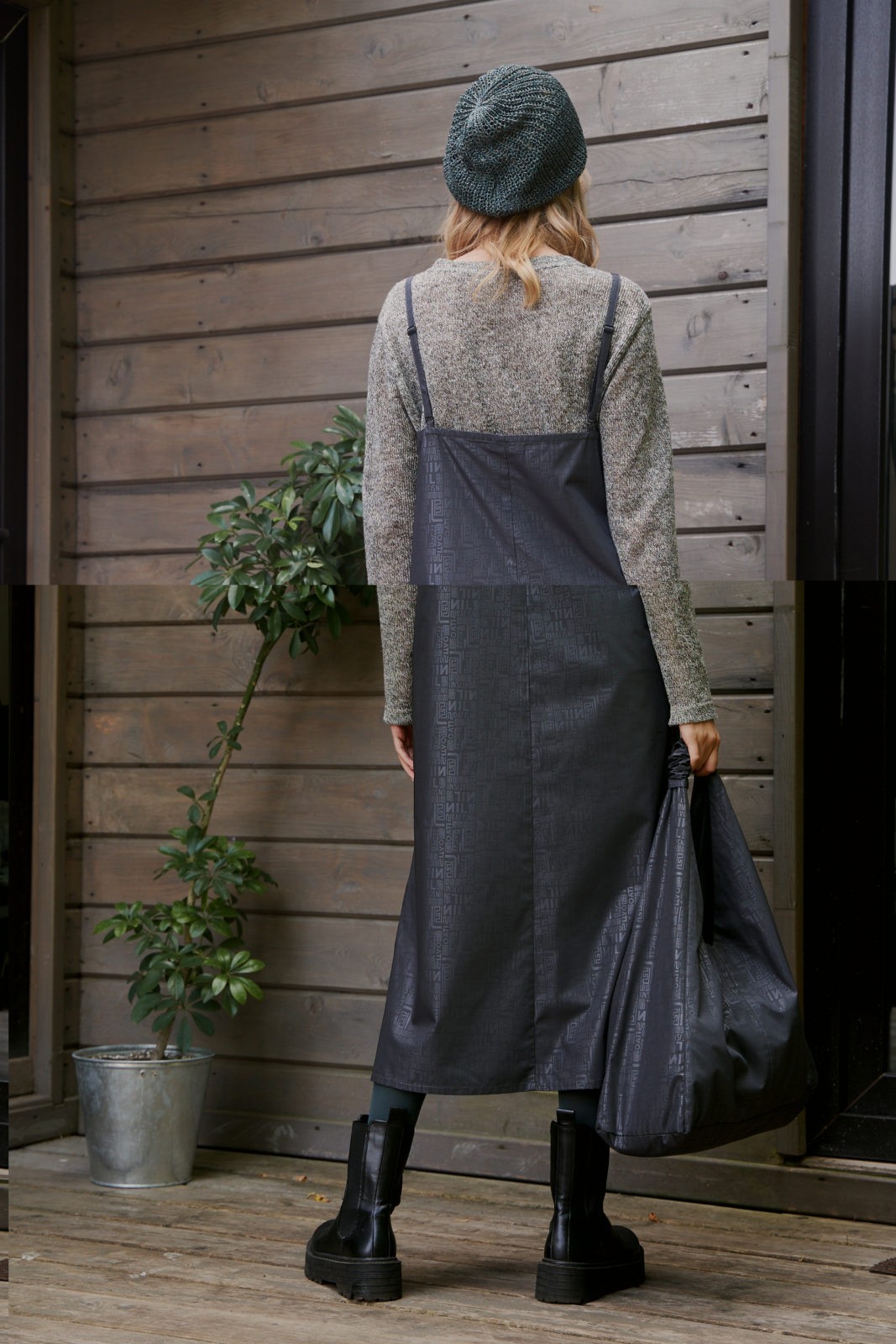 Женский сарафан из плащевой ткани  с люверсами  на бретелях прямого силуэта слегка расширенный к низу   с разрезами по бокам. Длина миди. Карманы в боковых швах.