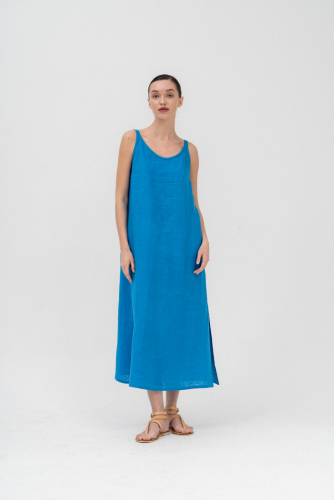 Сарафан женский на бретелях. расширенный к низу с разрезами. В боках карманы.