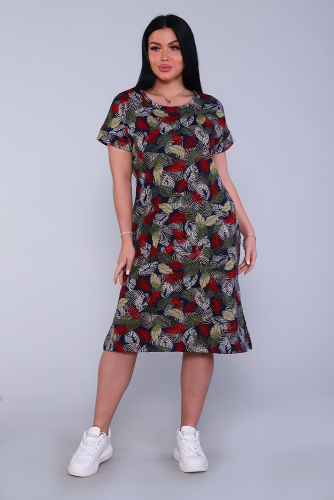 Платье-трапеция с коротким рукавом. Обратите внимание, платья из разных тканей - в расцветках бежевый, голубой, зеленый и черный платья выполнены из искусственного шелка
