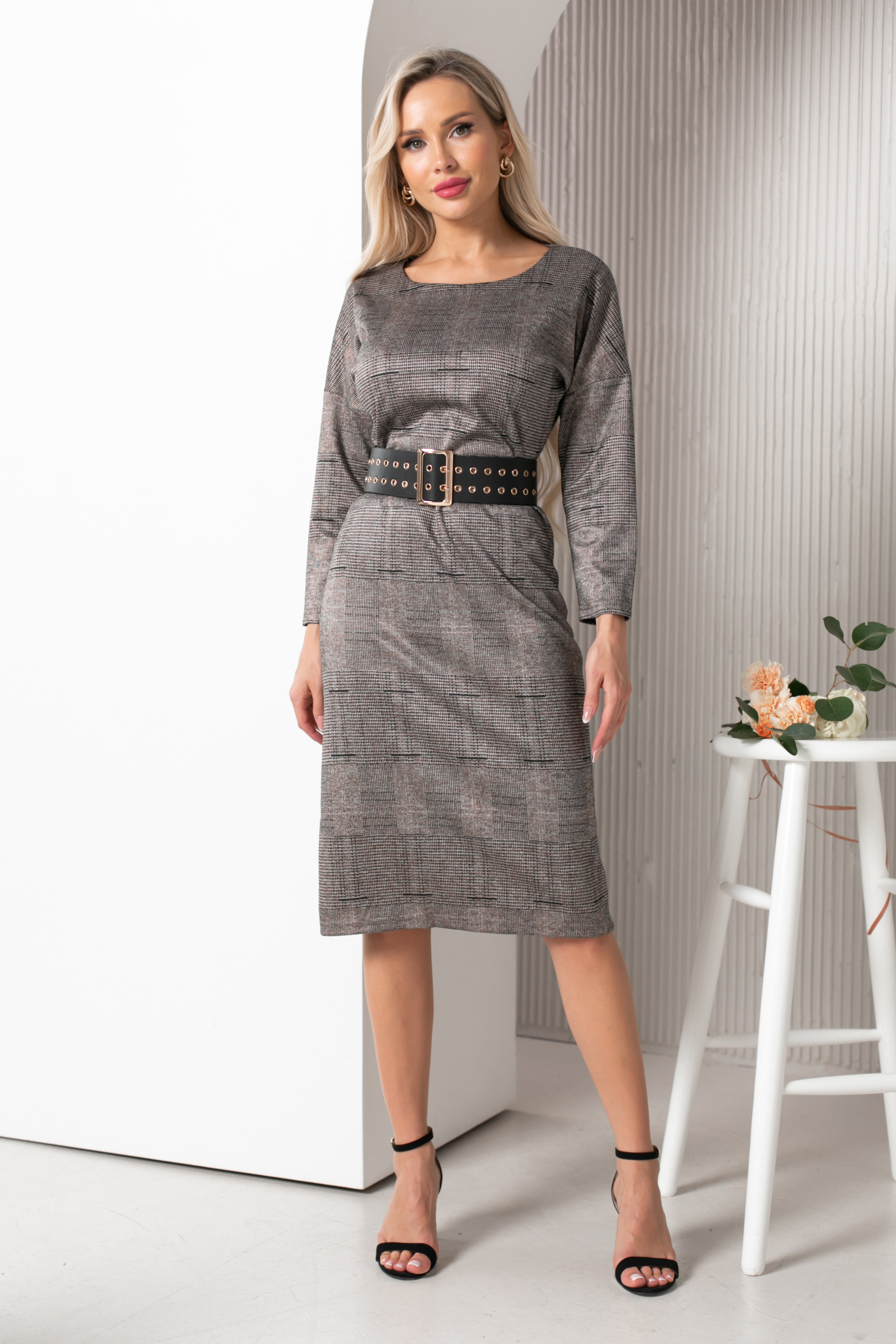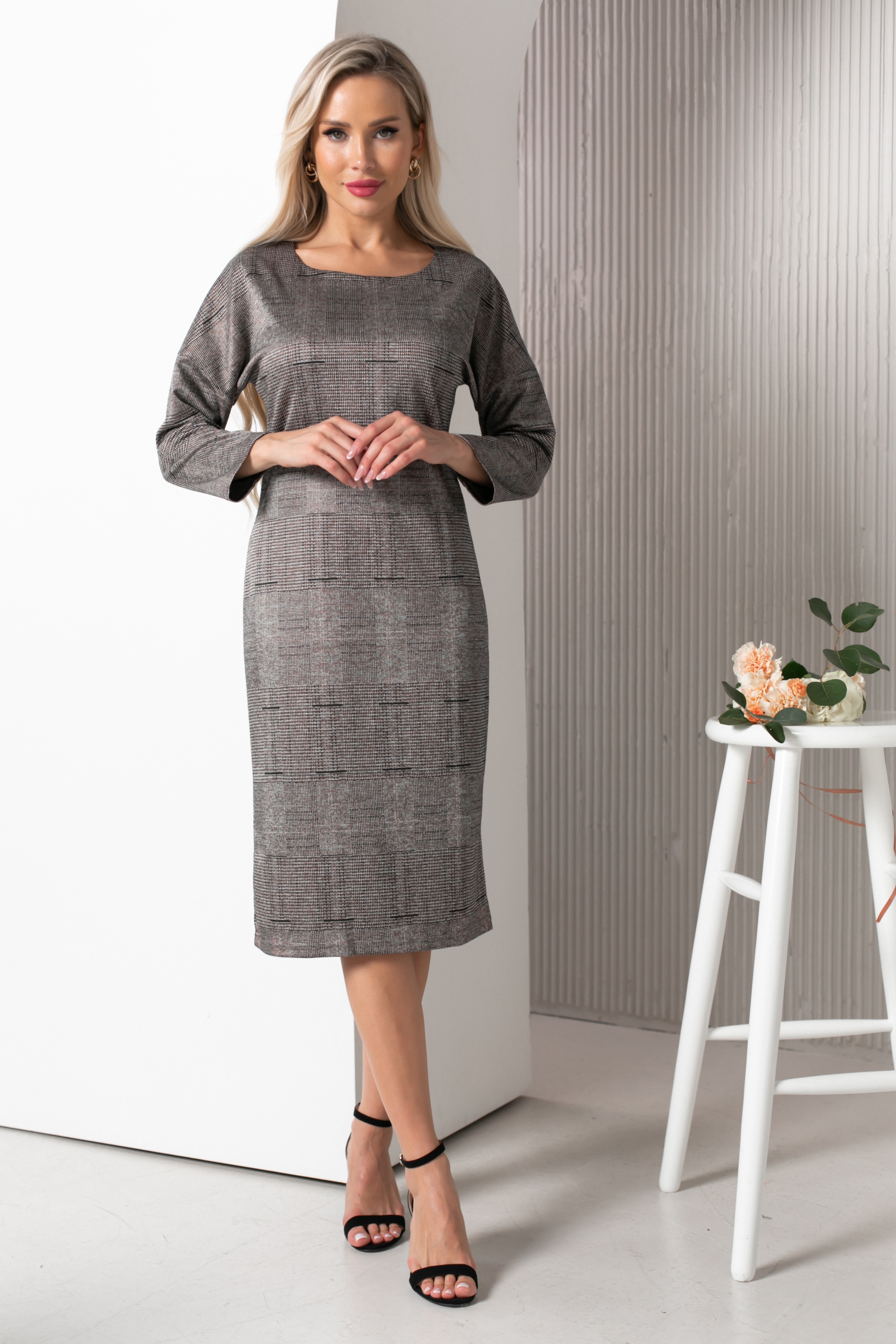 Трикотажное платье полуприлегающего силуэта. Втачной рукав - летучая мышь длинной 3/4. Округлая горловина на внутренней обтачке. Модель без молнии. Низ ровный, без разрезов. Идеальный вариант на каждый день.