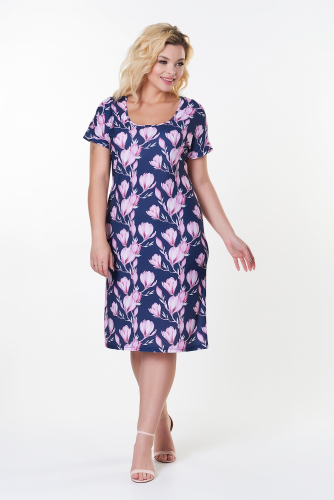 Комфортное платье прямого силуэта из легкого трикотажного полотна с цветочным принтом. Спущенные короткие рукава. Круглая горловина. Низ ровный, без разрезов. Хороший вариант на каждый день. Итальянский принт. Принт купонный - расположение рисунка может меняться.