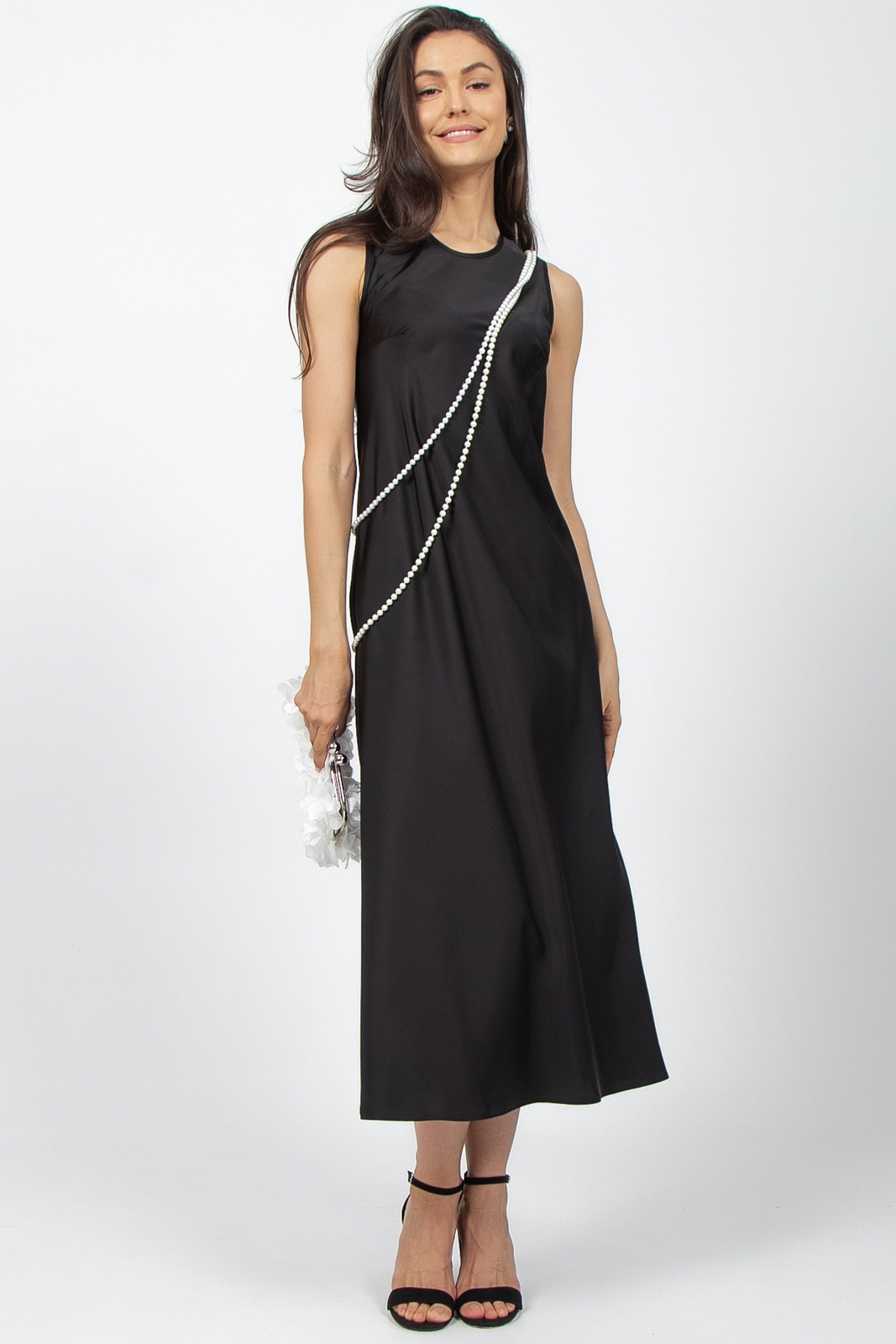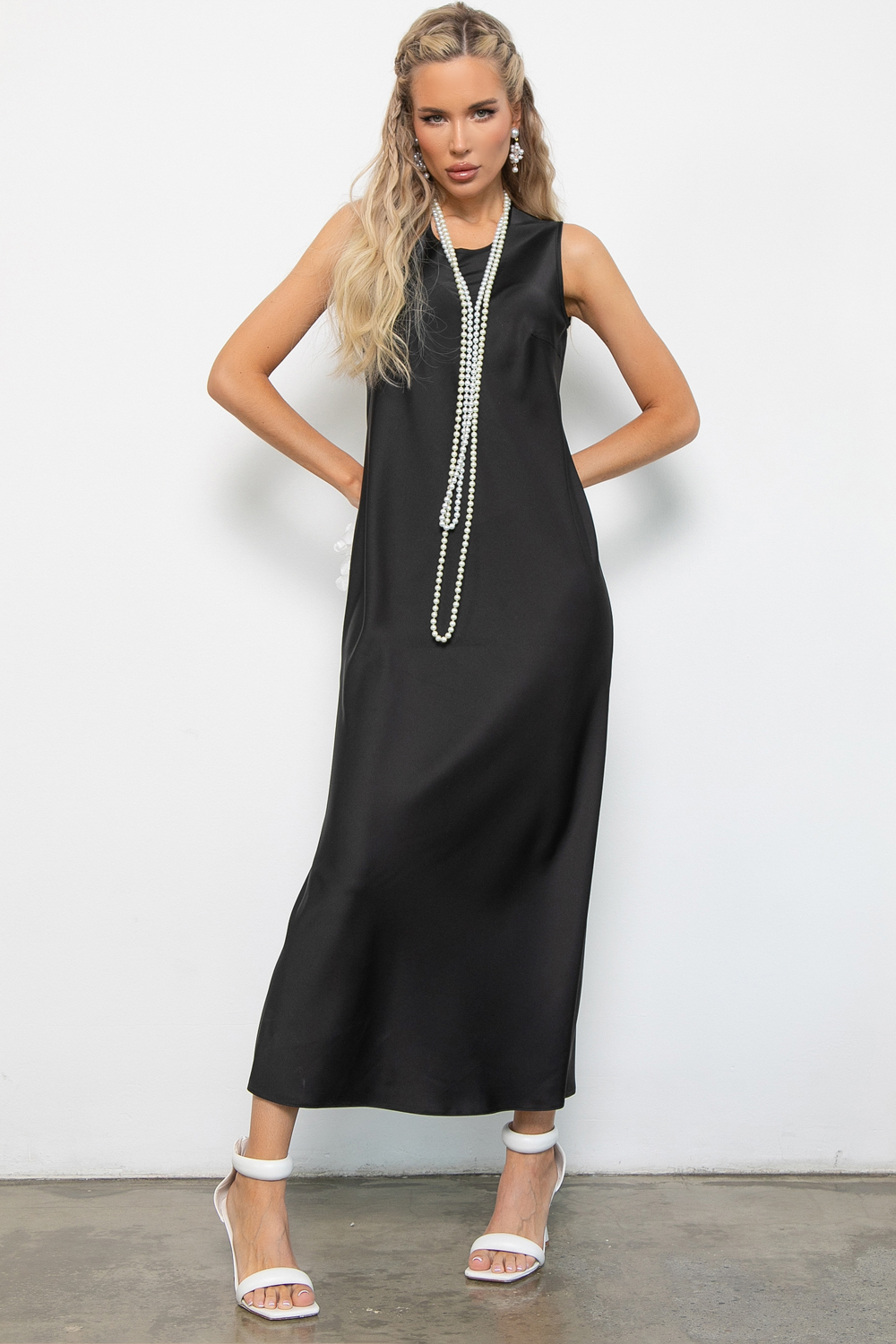 Шикарное однотонное платье  поможет воплотить строгие луки в популярном бельевом стиле для деловой встречи и офисной работы в демисезонный (весенний и осенний) период.