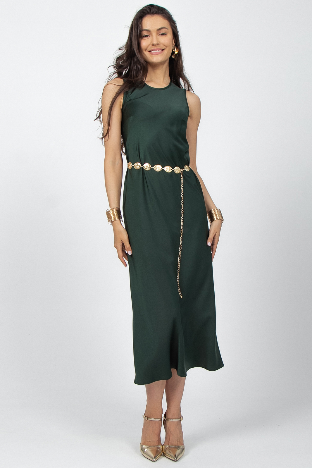 Шикарное однотонное платье  поможет воплотить строгие луки в популярном бельевом стиле для деловой встречи и офисной работы в демисезонный (весенний и осенний) период.