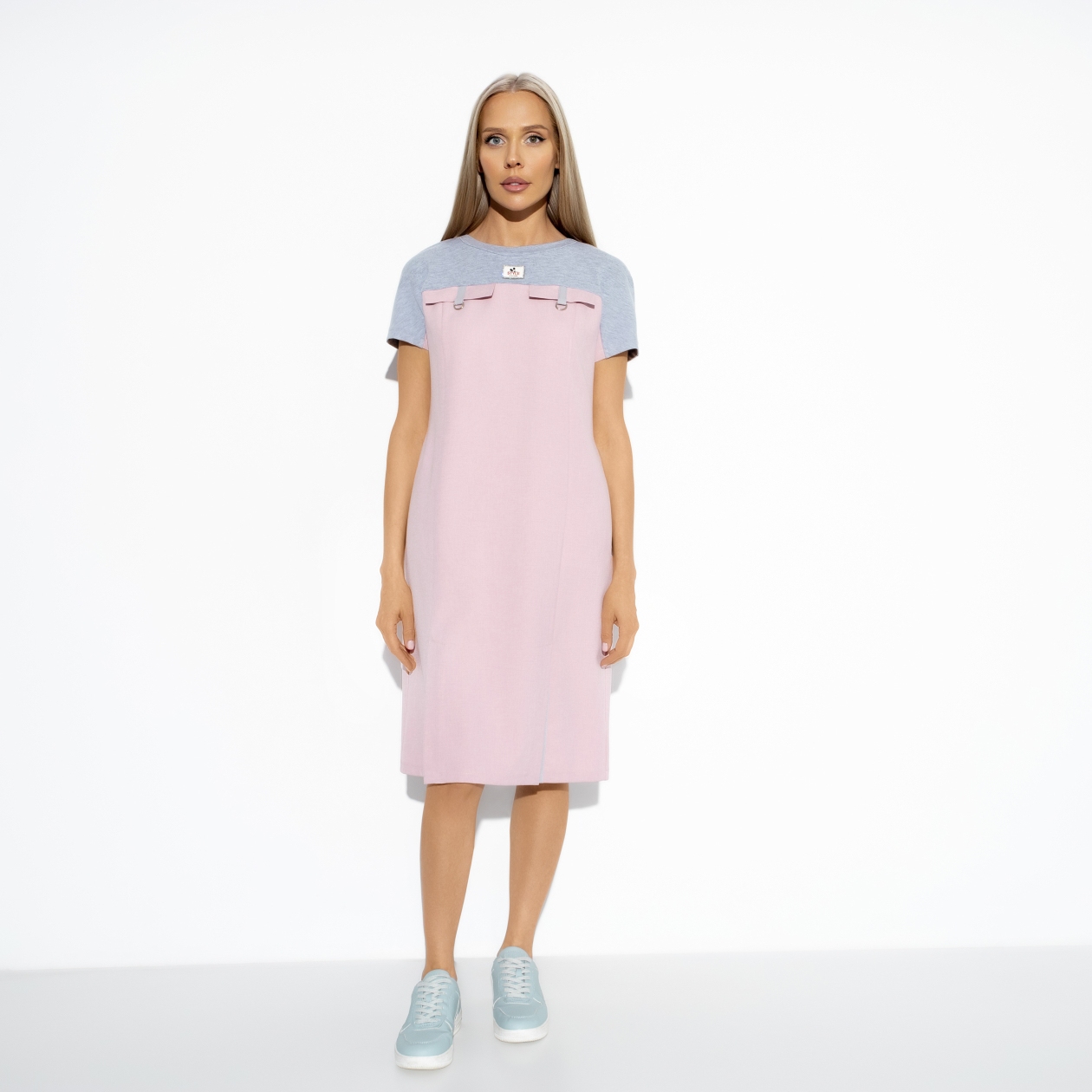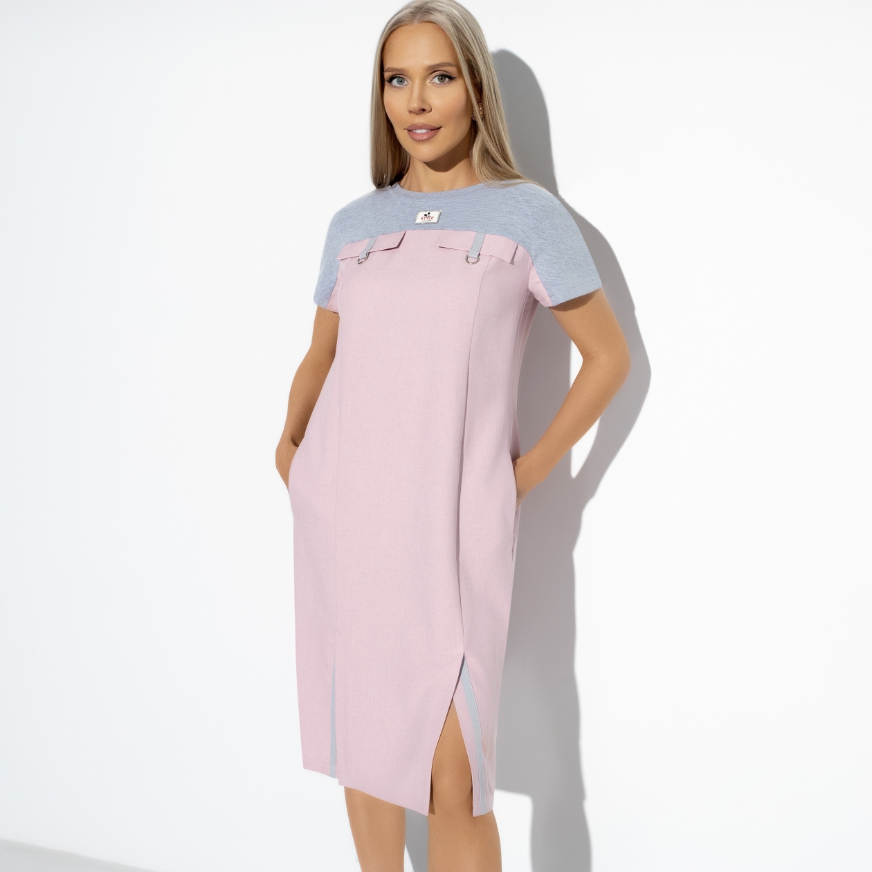 Выбирать не только моду, но и себя в моде — один из принципов CHARUTTI. Ориентироваться на свой вкус и комфорт легко с платьем CHARUTTI в милом сочетании цветов — серого и розового.
