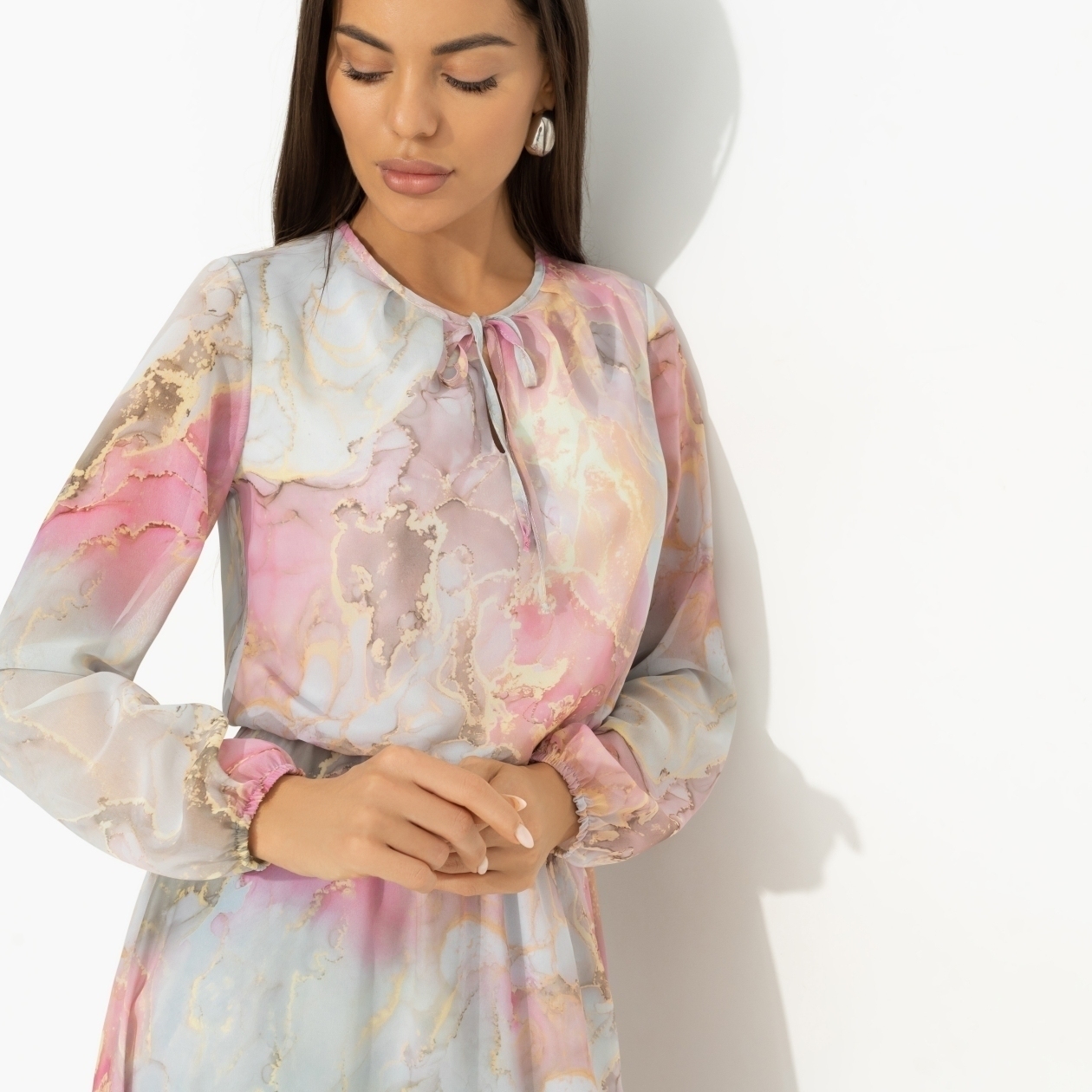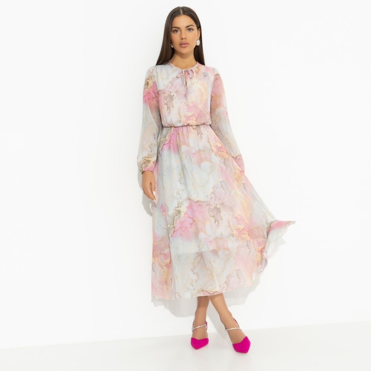 Это не просто наряд, это момент, который хочется продлить... нежность ткани, свобода кроя и моментальное чувство свободы. Настолько стильное, что время теряет свой смысл. Прекрасное мгновение вечности! Платье приталенного силуэта в длине миди. Резинка на талии. Тонкие завязки в зоне декольте. Рукава оформлены тонкими вшитыми резинками. Платье с подкладом.