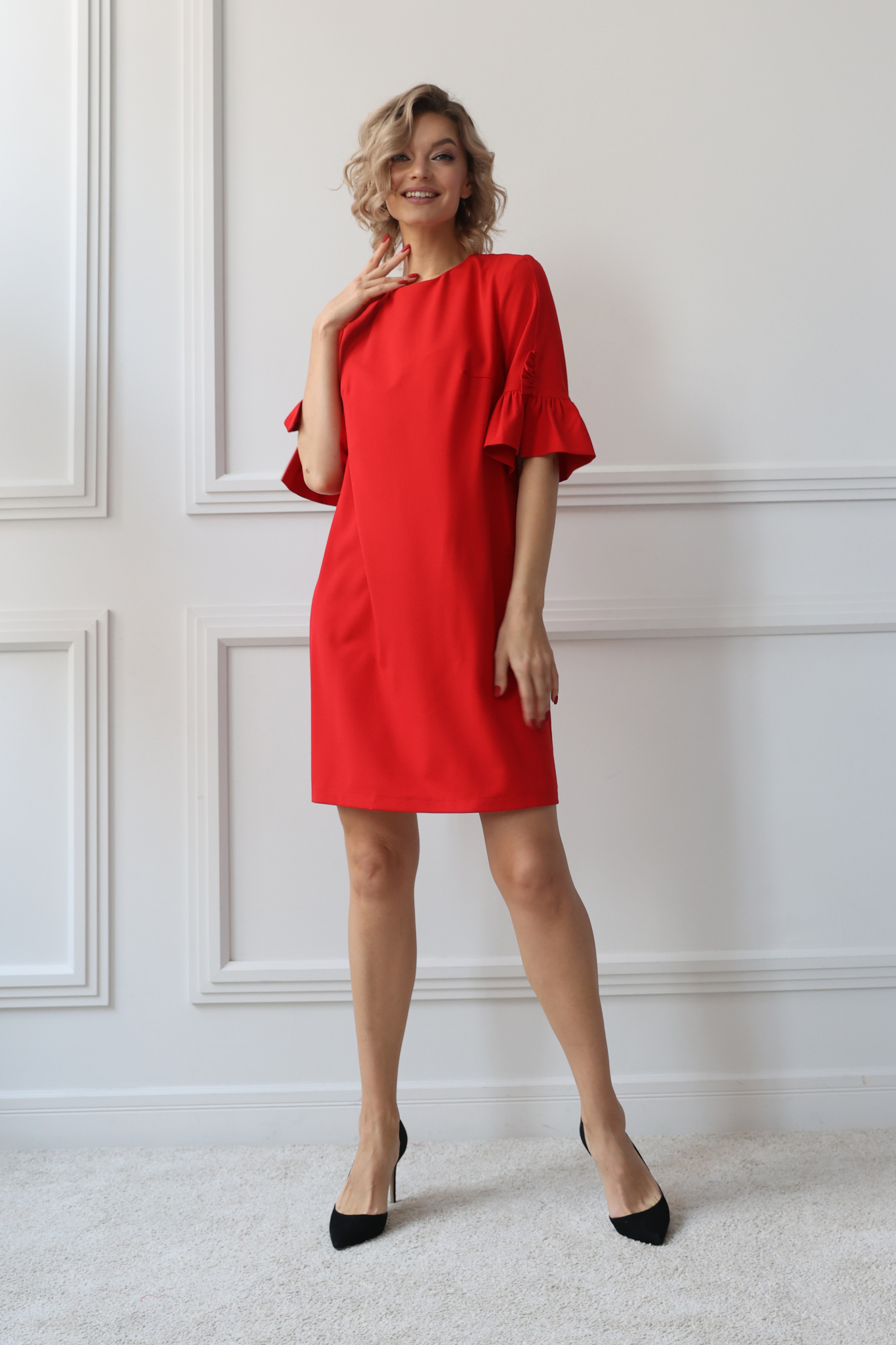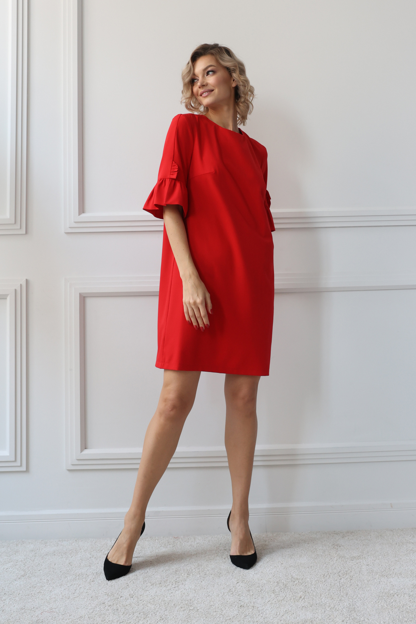 Платье прямое с воланами на рукавах
