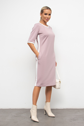 Комфортное платье прямого кроя, V-образная горловина на внешней обтачке. Втачной рукав длиной 3/4 присобран на пату. По переду функциональные карманы. Низ ровный,  с боку разрез.