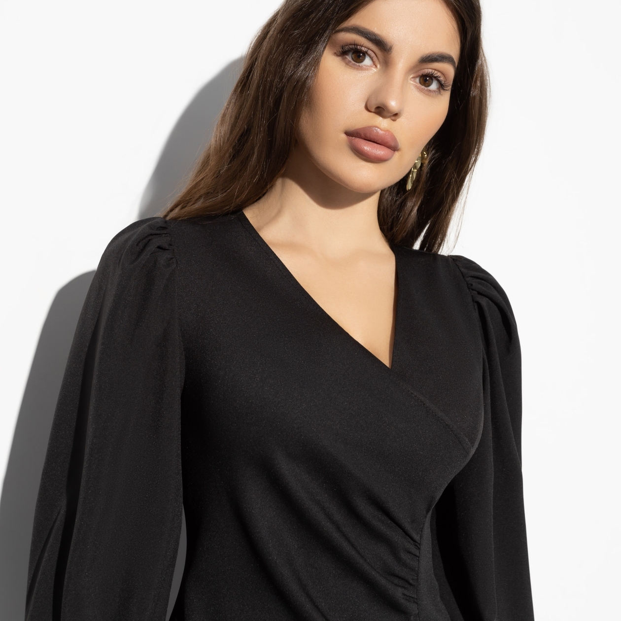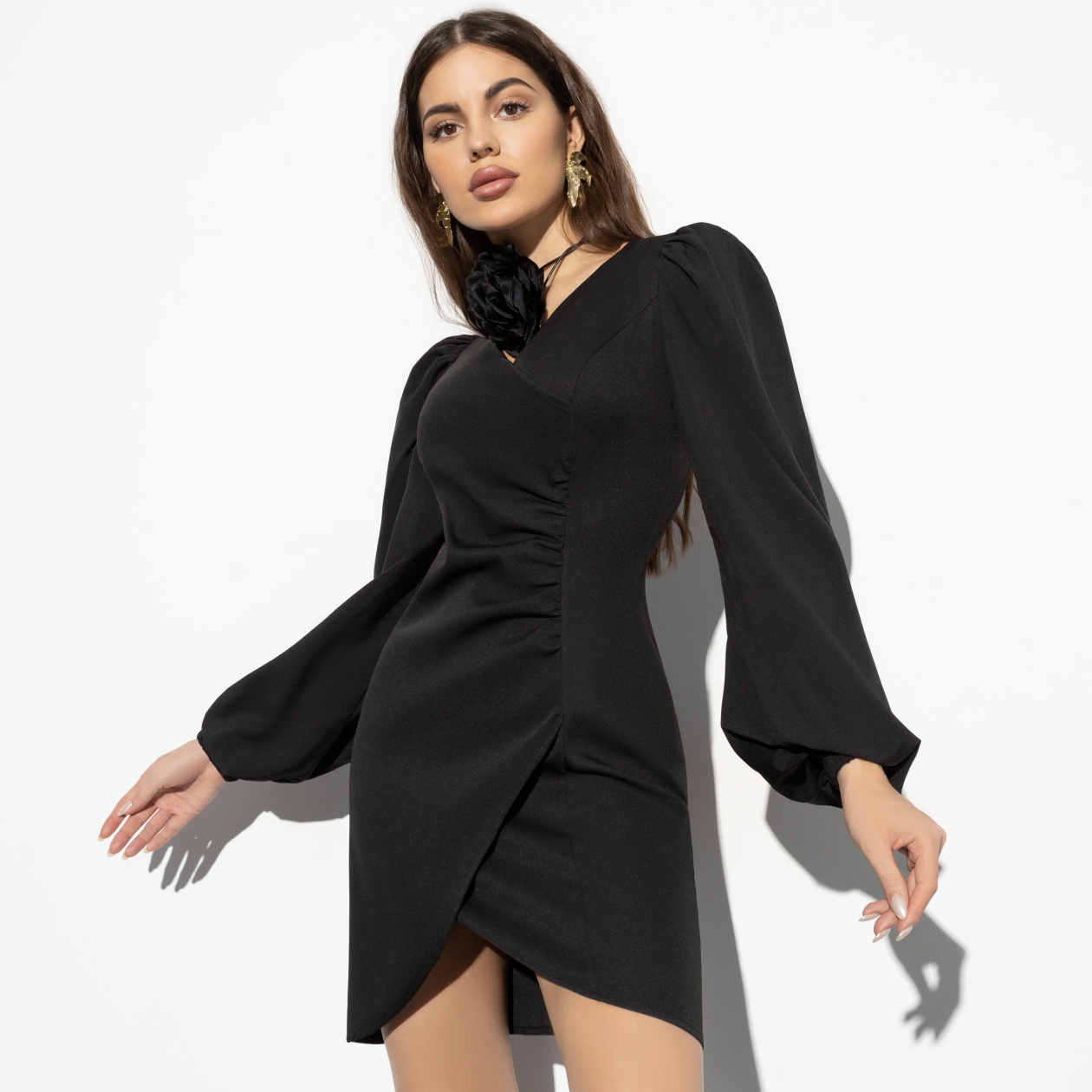 Внимание! Обнаружено идеальное черное платье. Свободный женственный крой рукава, приталенный силуэт и интригующая длина, потому что в CHARUTTI знают ваши сильные стороны. Если вы понимаете, о чем мы.
