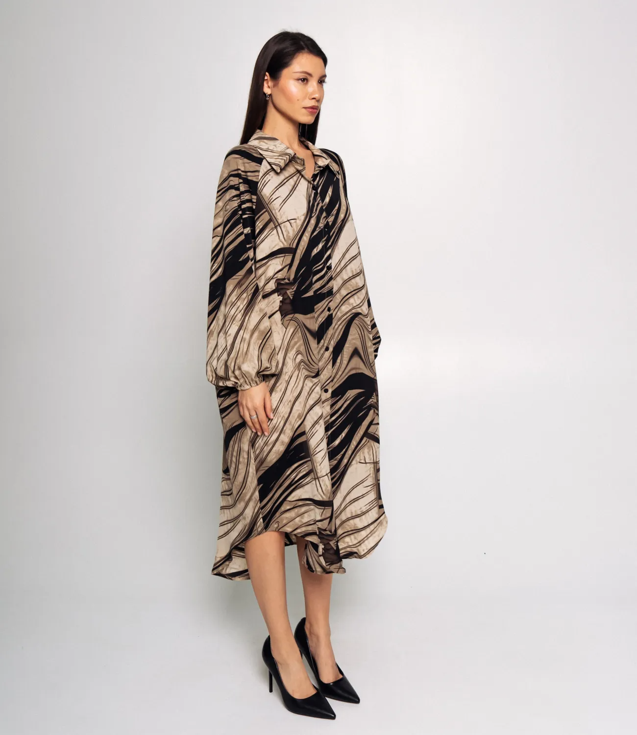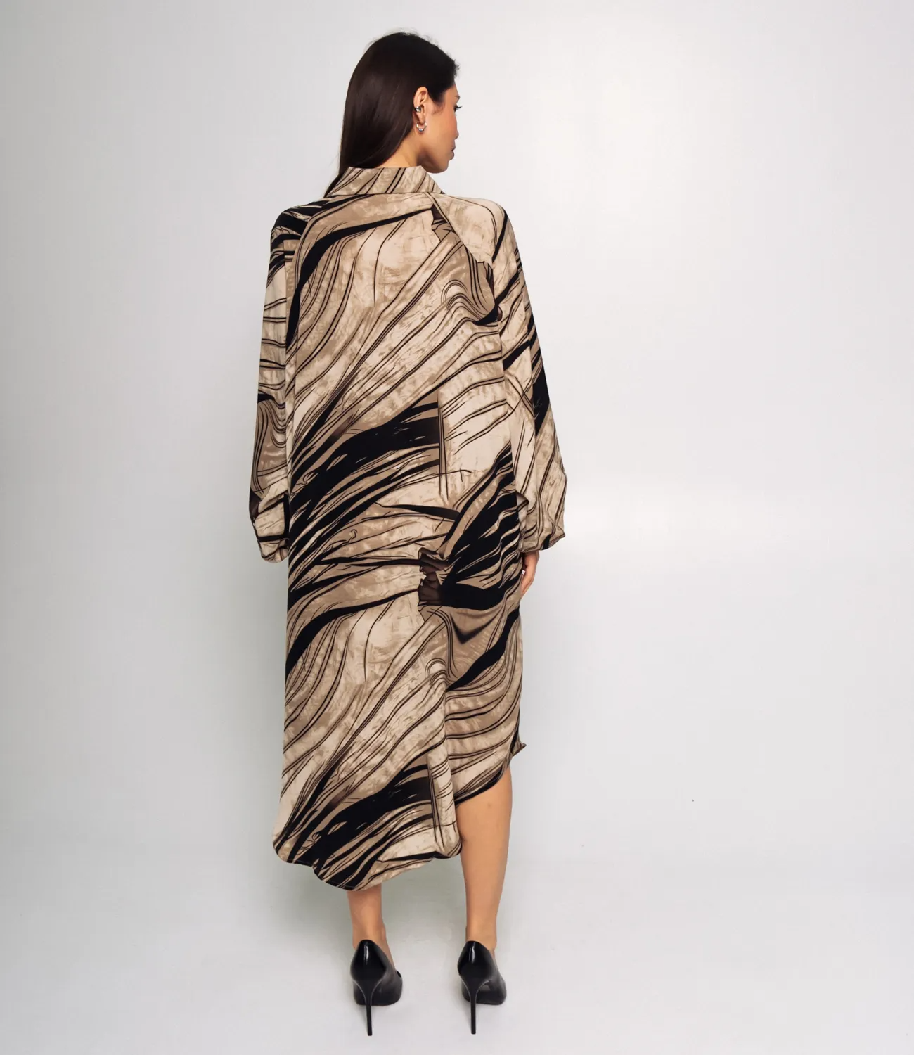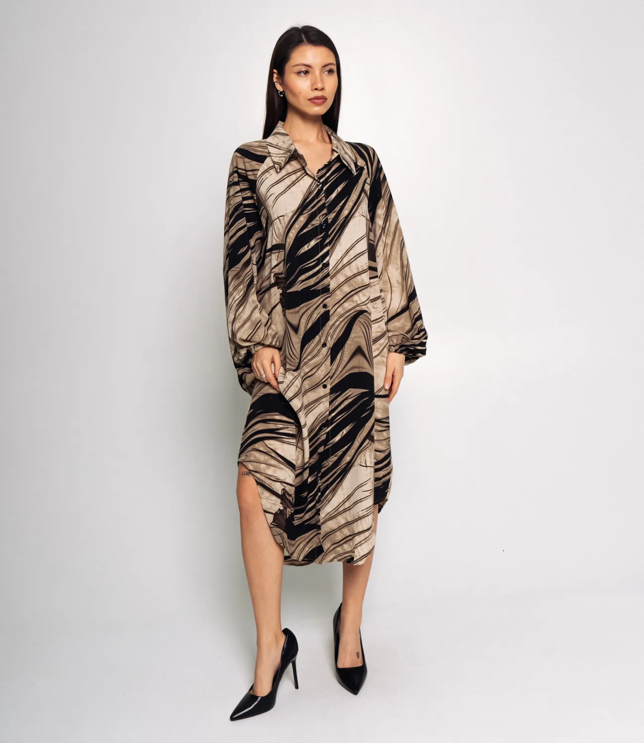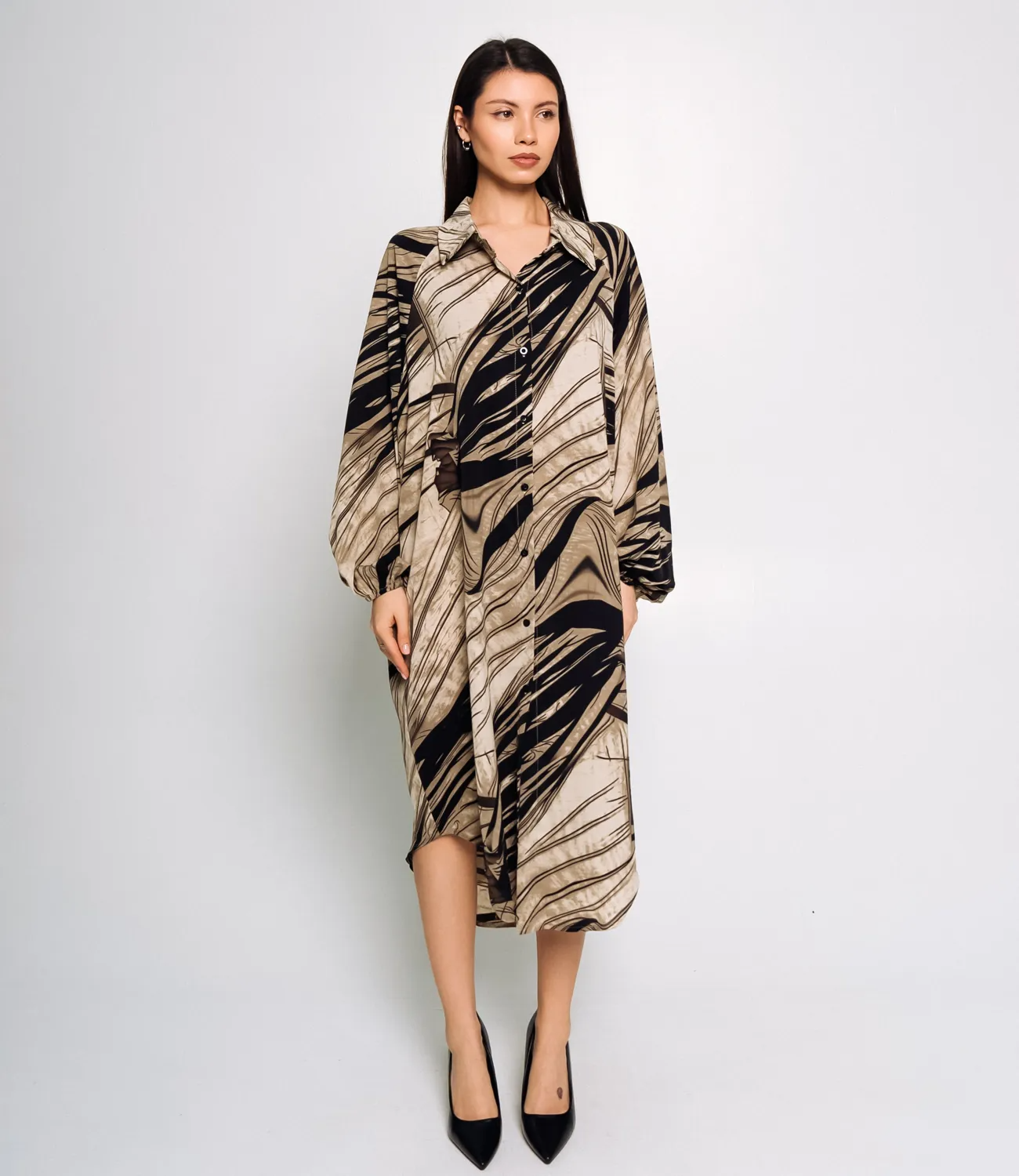 Это платье-рубашка — прекрасный выбор для вашего магазина, предлагая стильный и универсальный дизайн, который станет отличным дополнением к гардеробу ваших клиентов. Стильное платье-рубашка с длинным рукавом, идеально подходит для создания как повседневных, так и деловых образов. Нежные нейтральные тона с абстрактным узором, что делает его универсальным для различных стилей. Свободный и расслабленный крой, расходящийся к низу, что позволяет легко передвигаться и чувствовать себя комфортно. Разрезы по бокам для удобства и стильный акцент; подходит как для носки с каблуками, так и для кроссовок. Изготовлено из ткани 100% полиэстер платье обеспечивает отличное качество и приятные тактильные ощущения. Независимо от сезона, она станет любимым элементом в гардеробе ваших клиентов. На странице сайта доступна таблица размеров, что позволит вашим покупателям легко найти подходящий вариант. Установленная цена делает это платье доступным для широкой аудитории, что обеспечит вам высокий уровень продаж. Рост 164 см, 83-61-89.