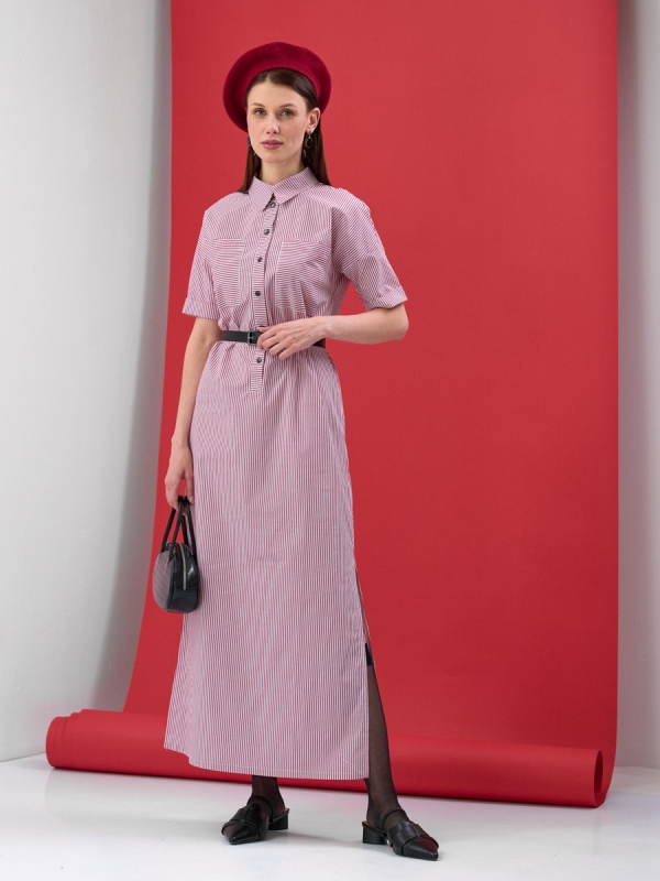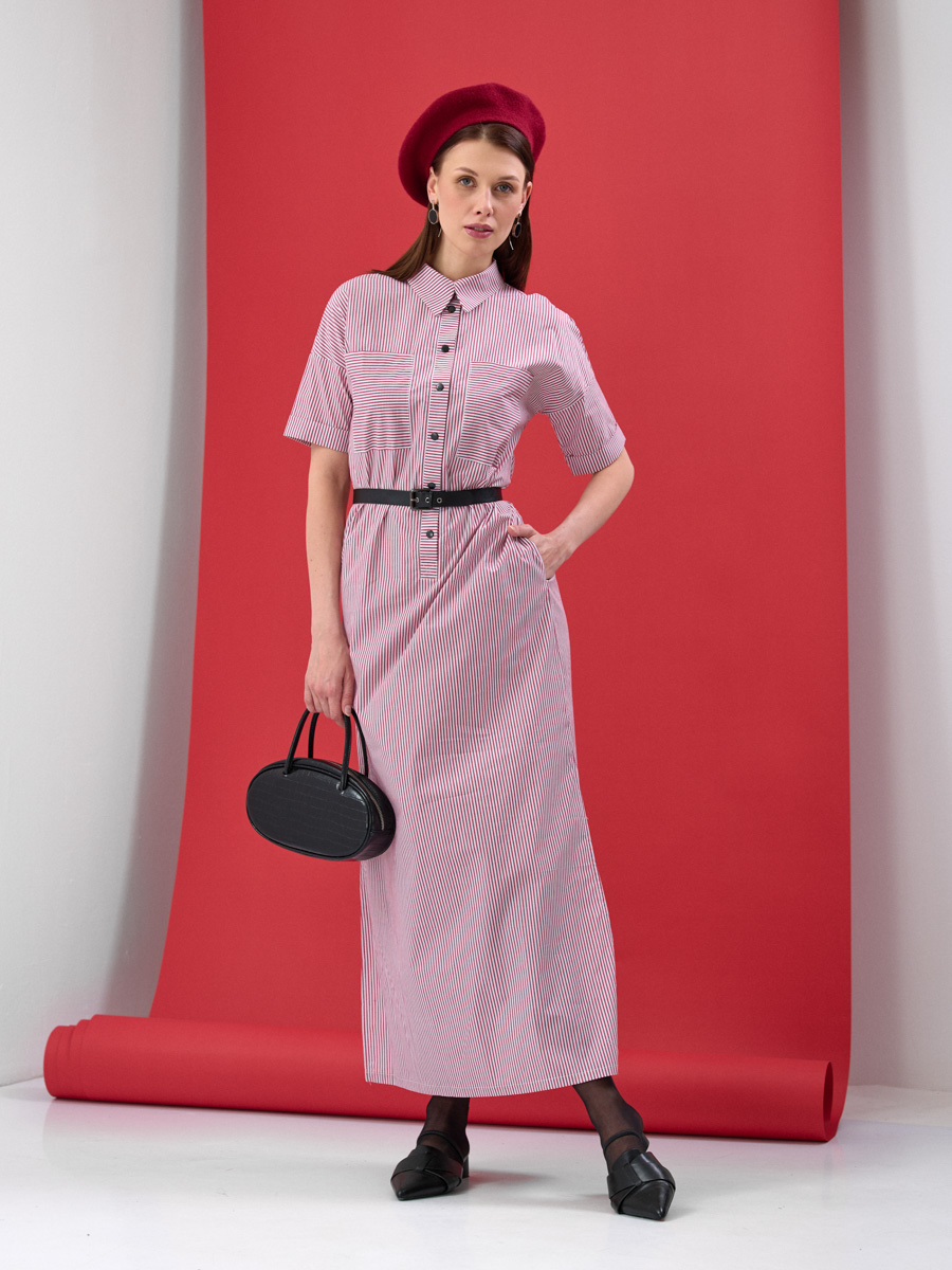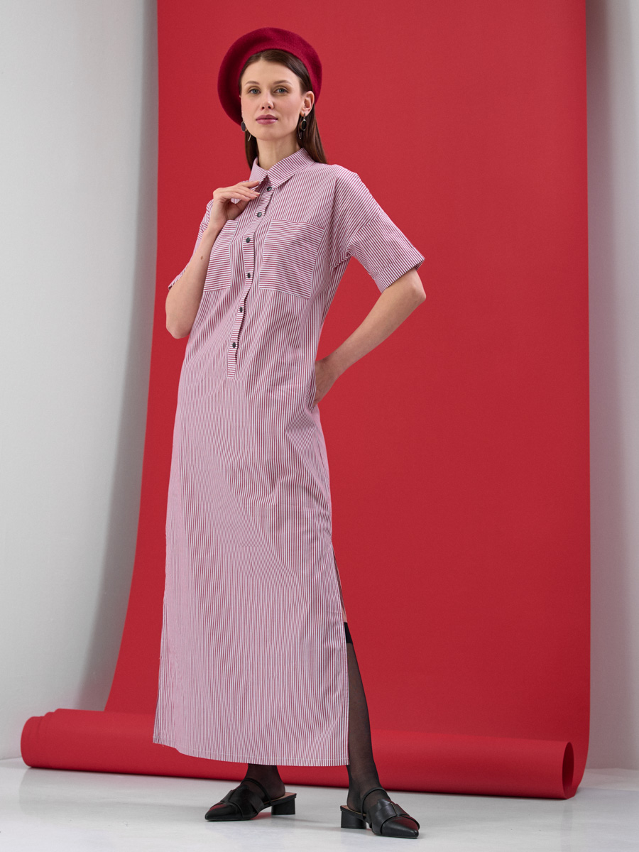 Представляем платье-рубашку макси в полоску от TANTINO – идеальное решение для вашего ассортимента. Как производитель полного цикла, мы гарантируем превосходное качество и актуальность дизайна.Преимущества для оптовых закупщиков:Материал: Натуральный хлопок – комфорт и воздухопроницаемость, незаменимые для летнего сезона.Дизайн: Модная полоска, рубашечный воротник, планка на металлических кнопках и большие карманы. Создает современный и универсальный образ.Крой: Прямой, свободный силуэт со спущенной линией плеча и коротким рукавом с отворотом обеспечивает идеальную посадку на разные фигуры и свободу движений.Детали: Высокие боковые разрезы добавляют динамичность и женственность. Спинка на кокетке для комфорта.Универсальность: Легко стилизуется с поясом или носится свободно, расширяя предложения для покупателей.Инвестируйте в TANTINO – это платье обеспечит стабильный спрос благодаря качеству, комфорту и безупречному исполнению. Полный цикл производства, строгий контроль качества.