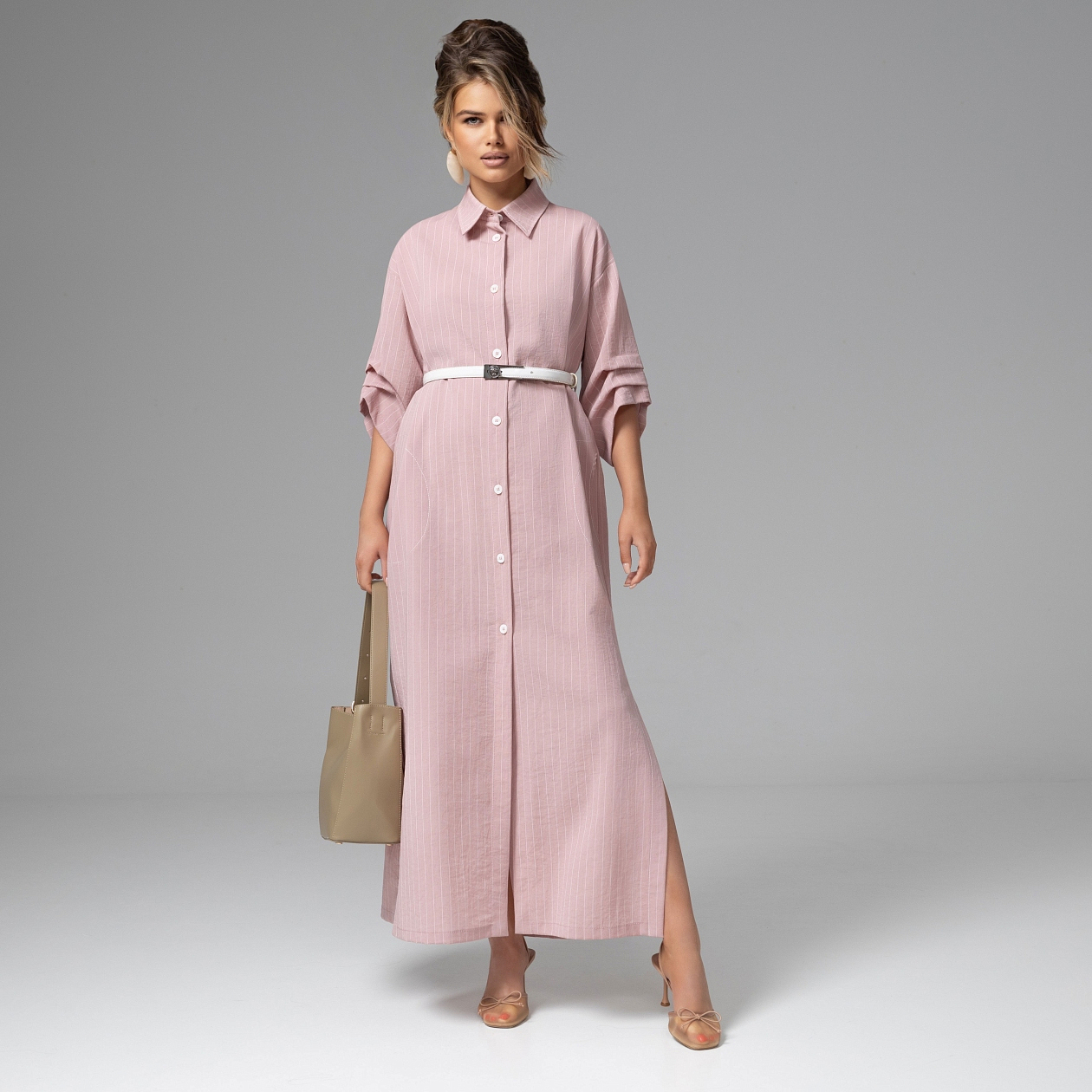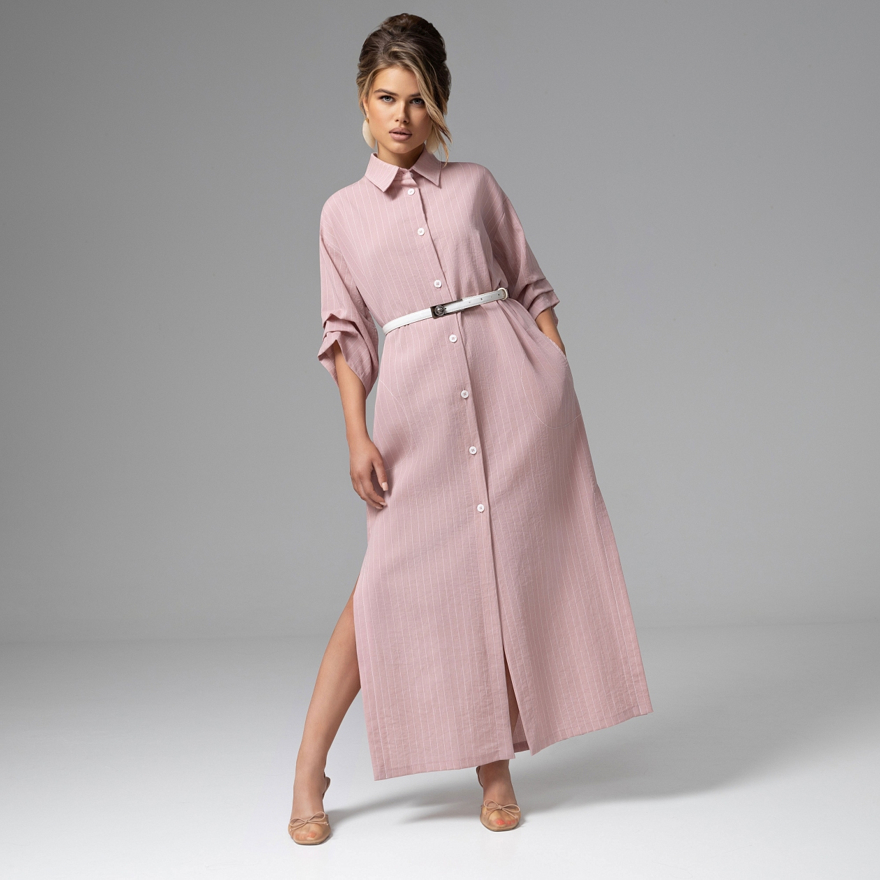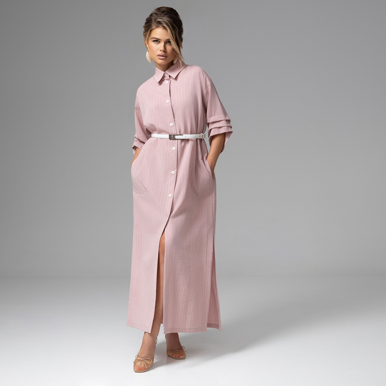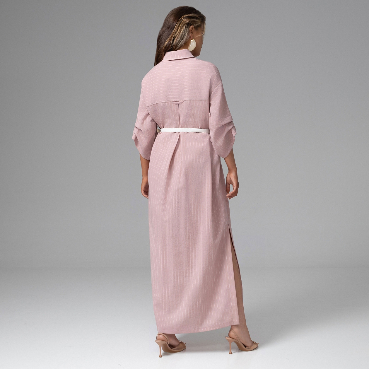 Утро набирает обороты: переговоры, такси, смех за обедом, новые идеи. Твое новое платье-рубашка создано для такого ритма. В нём легко идти вперёд, принимать решения и чувствовать, что день складывается именно так, как ты хочешь. Костюмная полоска собирает силуэт в чёткую вертикаль и делает образ визуально выше и стройнее. Вискозная ткань мягко держит форму, а ремешок в комплекте позволяет подчеркнуть талию или оставить силуэт более свободным – в зависимости от настроения и темпа дня. Кажется, сегодня у тебя получится абсолютно всё.