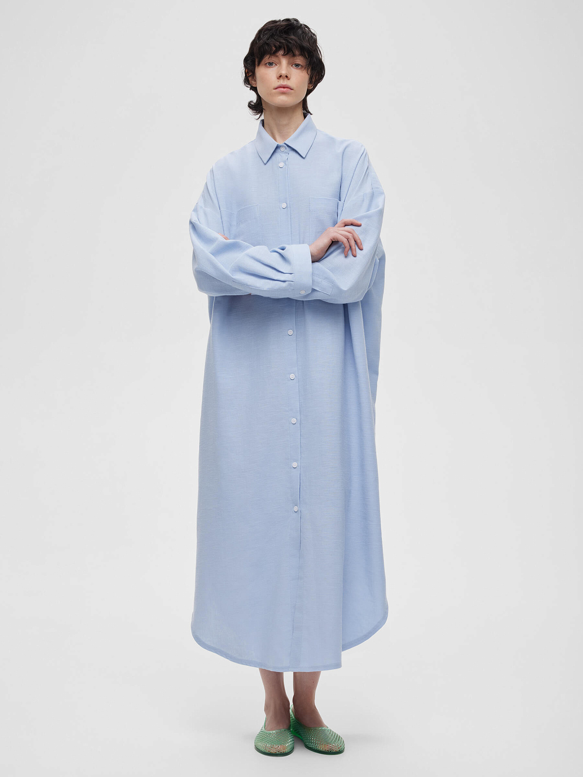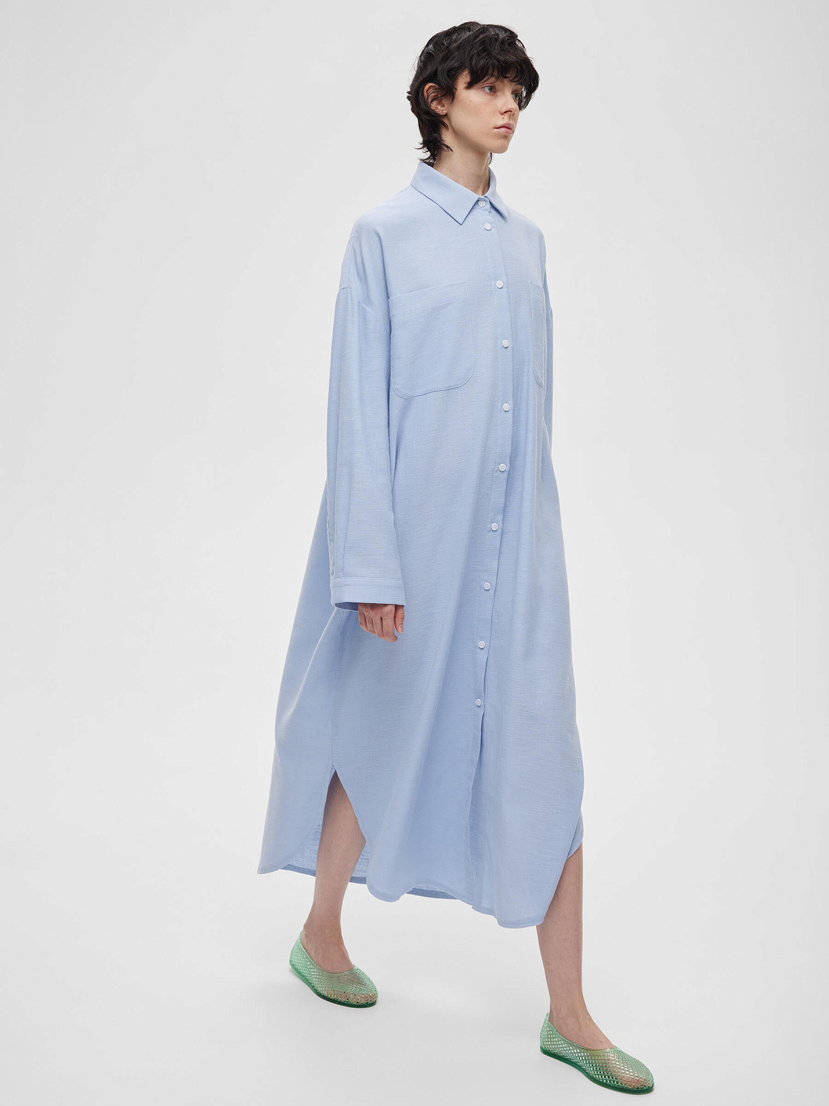 Платье-рубашка свободного кроя, голубой