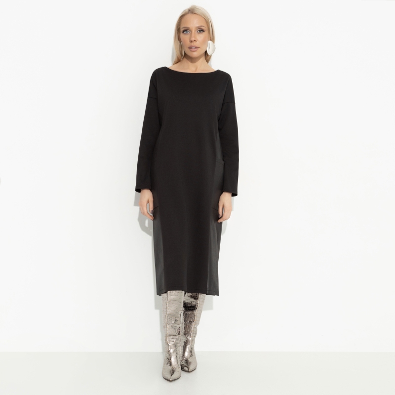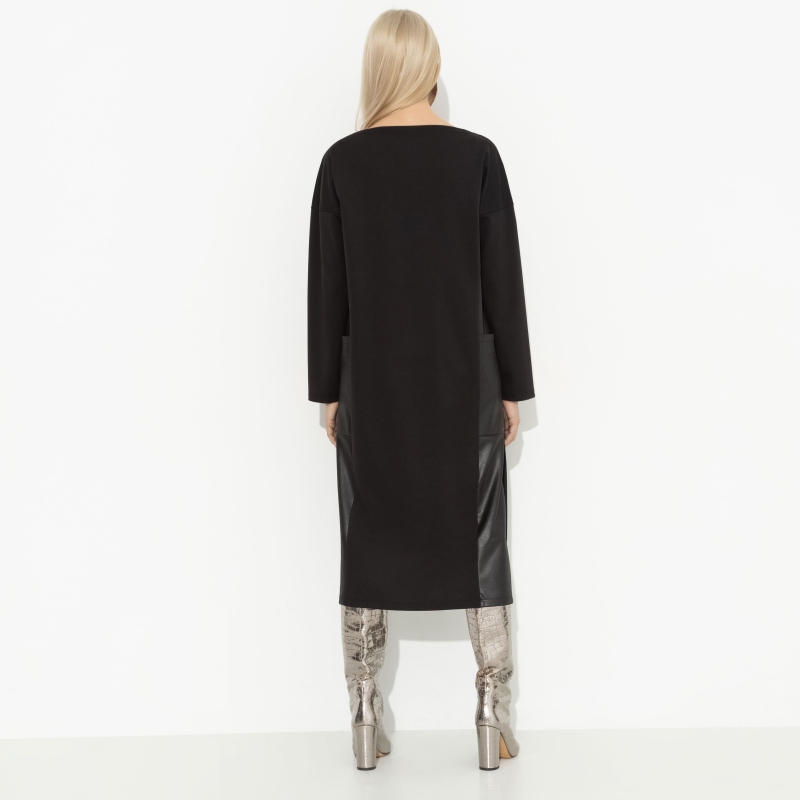 Вы уже в том социальном статусе, когда не нужны никакие доказательства привлекательности. Это свобода выбирать то, что вам действительно нравится. А вам нравится платье CHARUTTI в экстравагантном фасоне с кожаными элементами. Почему бы и да?! Платье свободной посадки в длине миди с разрезами по бокам. Вставки из экокожи по бокам изделия. Есть карманы. Линия плеча спущена.