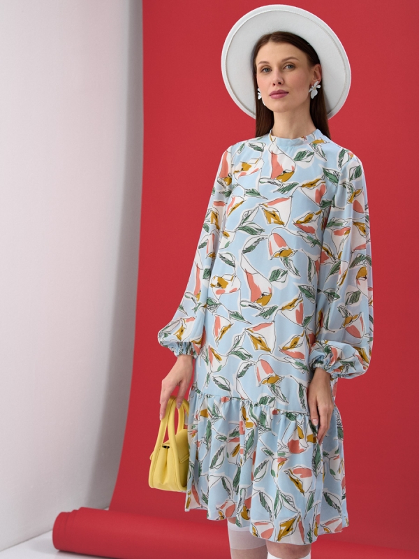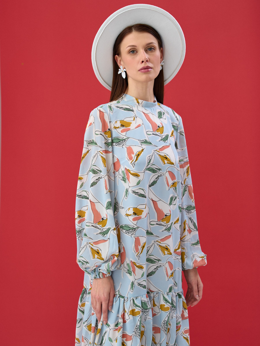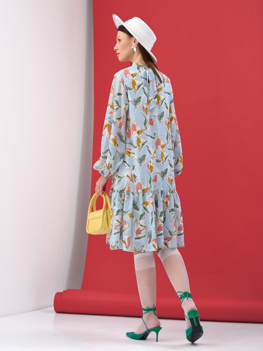 Представляем стильное платье из коллекции TANTINO, разработанное с учетом последних модных тенденций и потребностей оптовых закупщиков. Эта модель — идеальное решение для расширения ассортимента вашего бутика или шоурума, гарантирующее высокий спрос и лояльность покупательниц.Особенности модели:Дизайн и Принт: Платье выполнено в свежем голубом оттенке с абстрактным принтом, напоминающим стилизованные листья и бутоны. Этот актуальный рисунок придает изделию легкость и уникальность, делая его универсальным для различных летних образов.Объемные Рукава: Актуальные объемные рукава на резинке добавляют модели современный и женственный акцент, позволяя регулировать длину и создавать различные стилистические нюансы.Свободный Крой: Комфортный свободный крой обеспечивает идеальную посадку на различные типы фигур, что значительно расширяет круг потенциальных покупательниц и снижает риски возвратов.Качество Производства: Мы используем высококачественные ткани и тщательно проработанные лекала, обеспечивая безупречное качество пошива. Каждое изделие проходит строгий контроль на всех этапах нашего полного производственного цикла, от конструирования до финальной отделки.Преимущества для вашего бизнеса:Инвестируйте в модели, которые не просто продаются, а создают репутацию вашему бизнесу. Это платье — ваш шанс предложить клиентам нечто особенное: комфорт, стиль и бескомпромиссное качество, которое ценят в TANTINO. Закупая оптом у нас, вы получаете гарантированный товарный оборот и высокую маржинальность, укрепляя свои позиции на рынке.