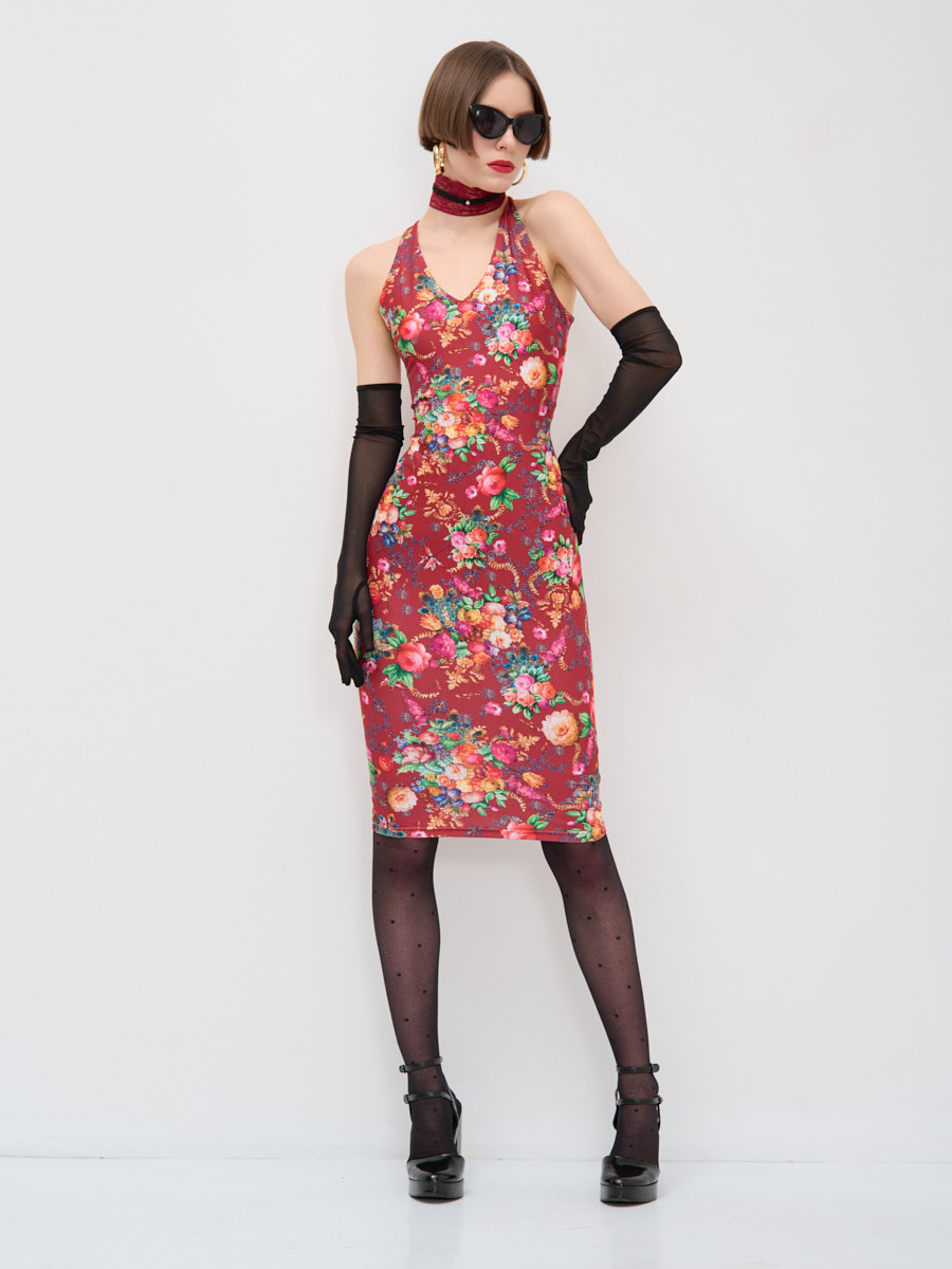 Платье из трикотажной ткани масло прилегающего силуэта. Спина открыта, на широких бретелях. По спинке на линии талии резинка для лучшего прилегания. Ткань мягкая, легкая и очень приятная к телу. Рост модели 175 см. Изделие на модели 42р-ра. Длина изделия 112.5 см. Машинная стирка при 30