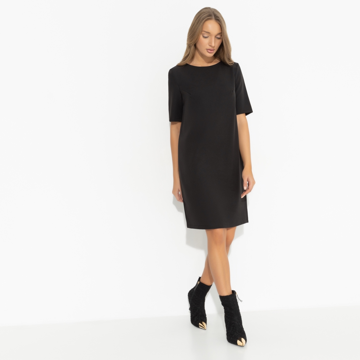 Маленькое черное платье, каким его видят дизайнеры CHARUTTI. С заботой о женщине, с уважением к моде. В современном прочтении платье удобное, стильное и удивительно подходящее к любым событиям жизни. Платье прямого кроя с карманами. Изделие хорошо смотрится на любом типе фигуры. Деликатные выточки в зоне груди.