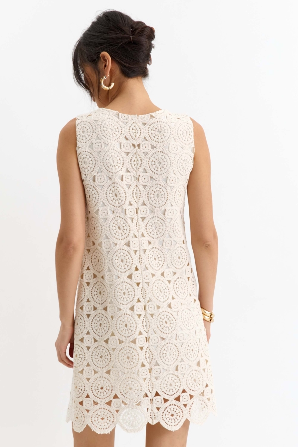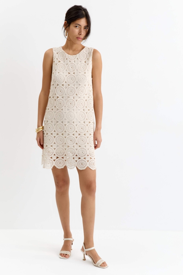 Лаконичное платье из хлопкового кружева. Модель полуприлегающего силуэта. На подкладке из тонкого хлопка.