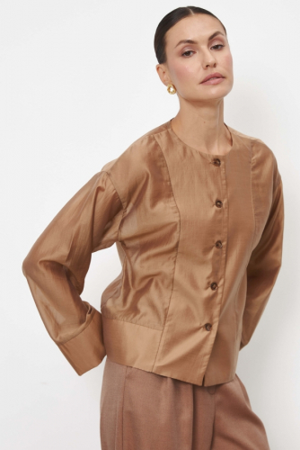 Платье из вискозного полотна с абстрактным принтом. Модель полуприлегающего силуэта. Рубашечный воротник. Рукав длинный, на манжете. Отрезное по линии талии, юбка с клиньями и асимметричным низом. По переду застежка на пуговицы. В комплекте пояс с пряжкой из основной ткани.