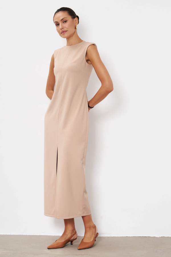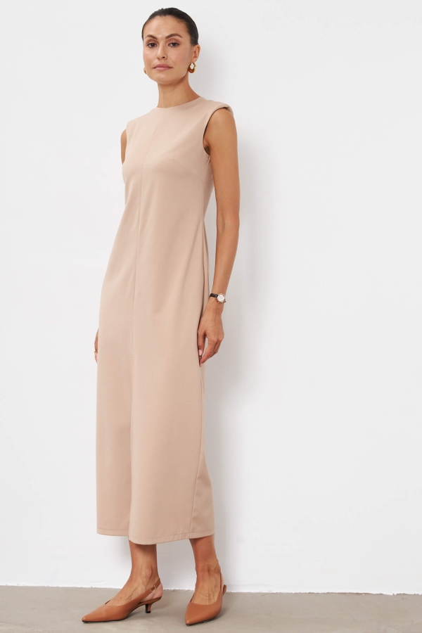 Элегантное платье из костюмного полотна. Модель полуприлегающего силуэта с декоративным швом по переду.