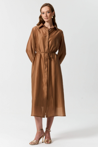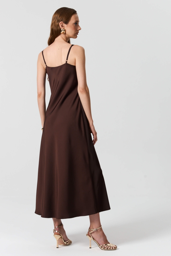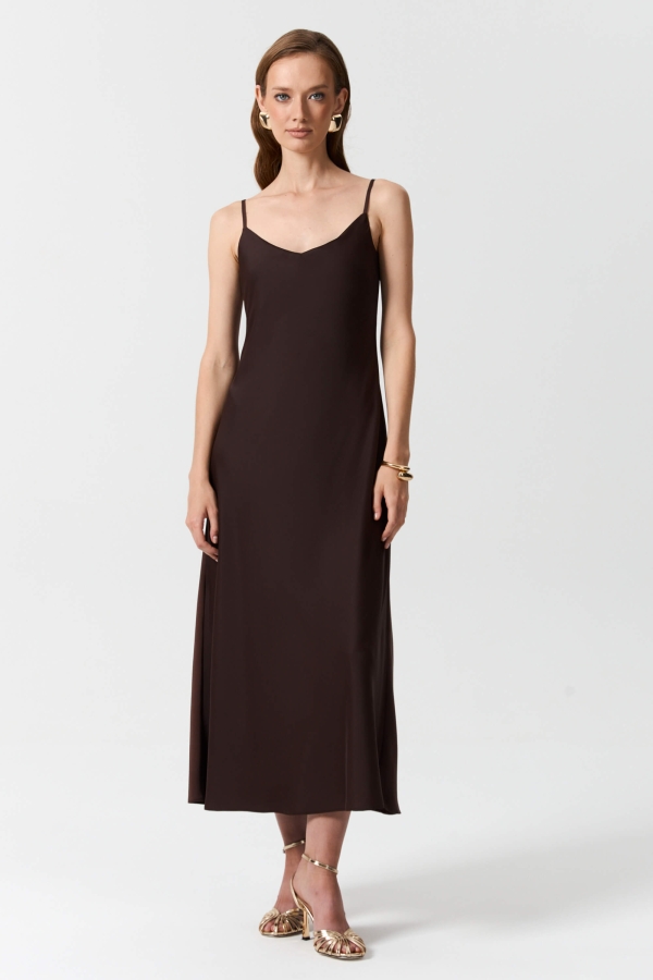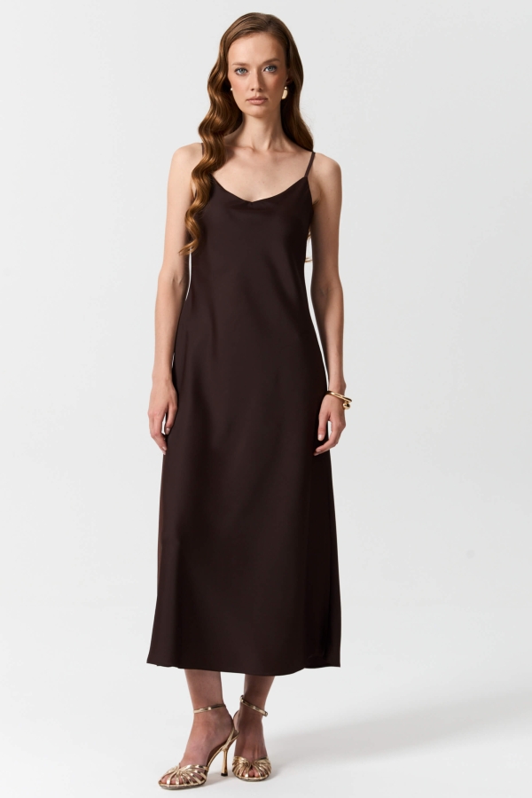 Платье в бельевом стиле длины миди. Модель полуприлегающего силуэта. выкроенная по косой. Бретели на регуляторах.
