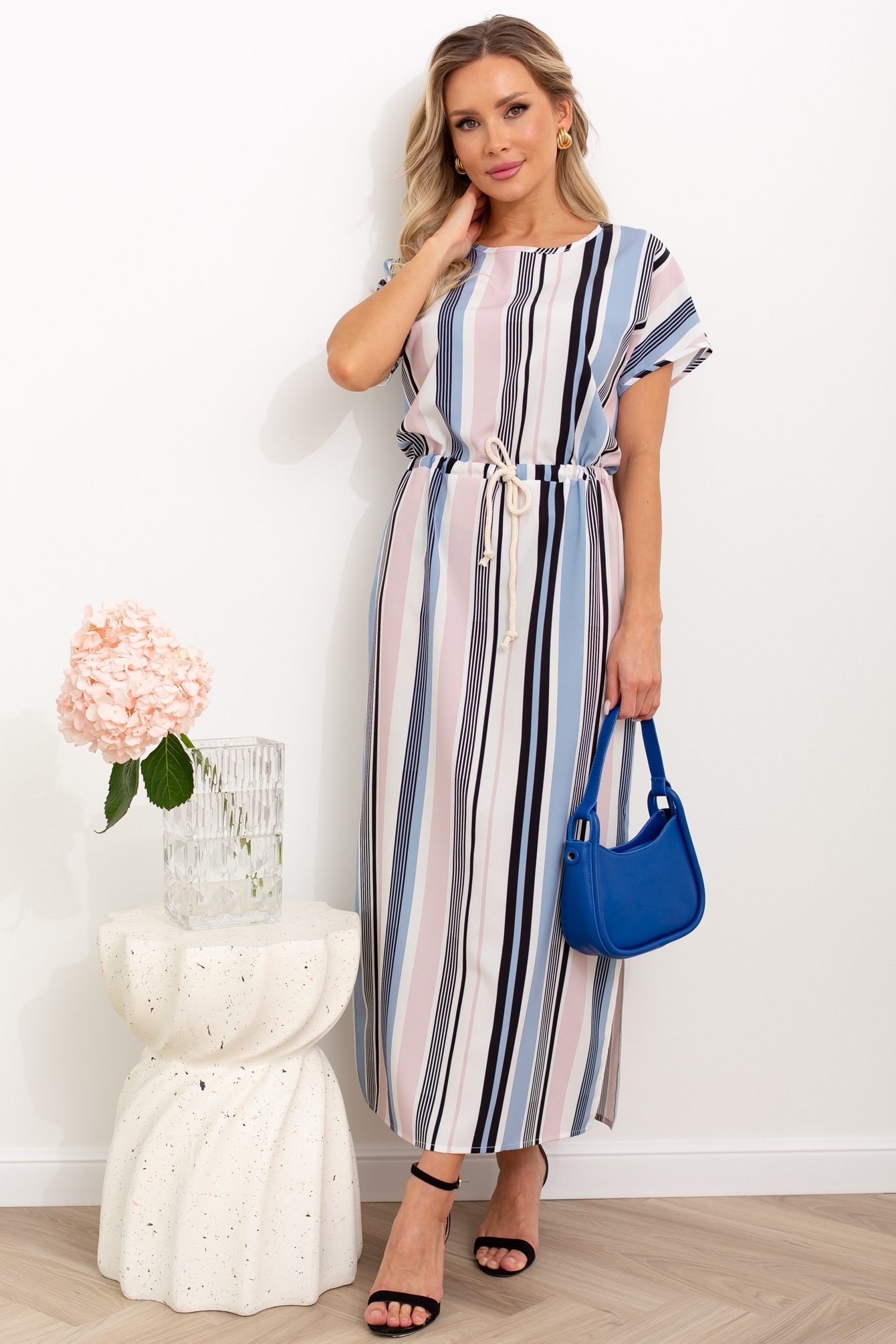 Комфортное платье прямого силуэта из легкой ткани. Модель без рукавов со спущенным плечом. Округлая горловина. По линии талии кулиска. Низ ровный, по бокам разрезы. Идеальный вариант на каждый день.