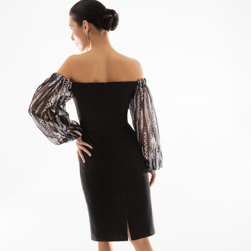 Ручная работа всегда была высшим классом в швейном производстве. Вышивка на сетке, использованная в декоре рукавов, делает это платье эксклюзивом.