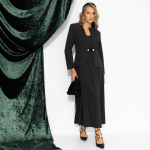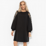 Я немного разочарована от платья. Декор крепится на совсем простецкие, чёрные пуговицы и их очень видно. Придётся их менять на декоративные пуговки. И с размером я ошиблась. На свои ОГ 104 и ОБ 109 надо было брать 50 размер вместо 52.