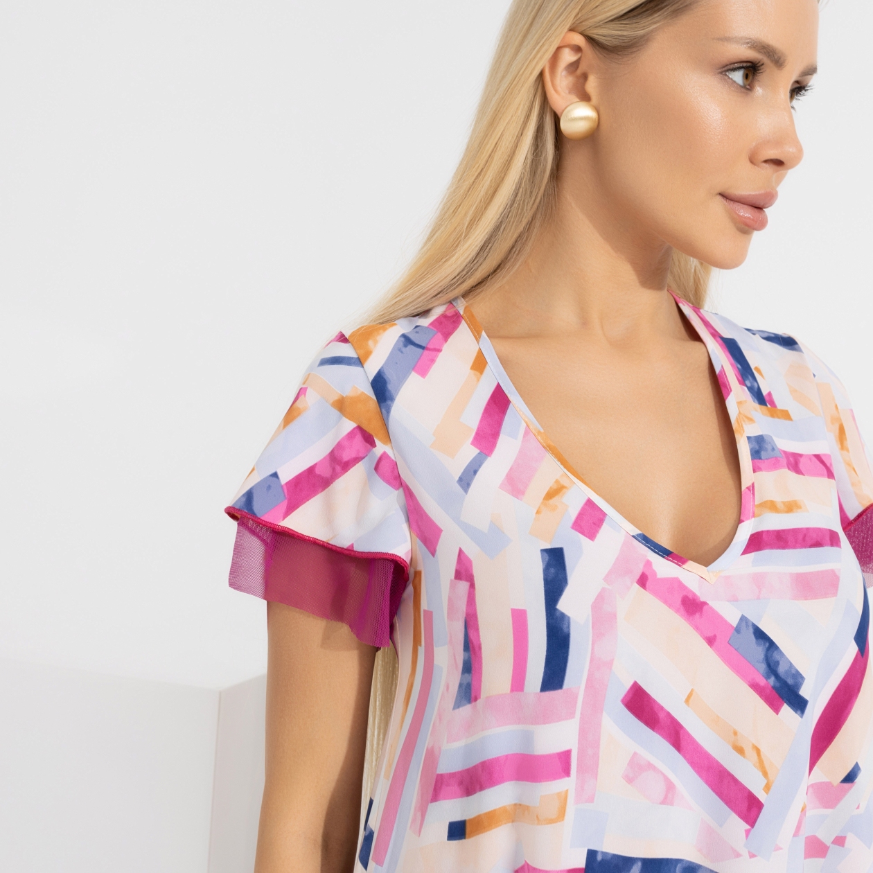 Помимо изысканного дизайна, это платье предлагает непревзойденный комфорт. Сочетание воздушного шифона с эластичной сеткой-стрейч позволяет ему подстраиваться под фигуру, даря ощущение комфорта и свободы движений. Такое платье станет не только визуальным наслаждением, но и приятным на ощупь. Оно идеально подходит для ленивой прогулки по городу или красочной вечеринки, дополнит коллекцию любого магазина женской одежды и привлечет множество заинтересованных покупательниц. Оптовая закупка платья – это шаг к увеличению разнообразия и качества ассортимента, что может значительно повлиять на успешность вашего бизнеса.