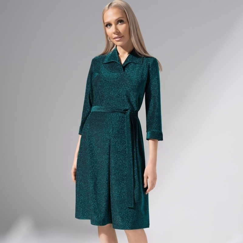 Единственный вывод, который ты делаешь, выходя из сложных ситуаций, – сияние не нужно откладывать на потом. В любом дне есть место блеску. А иногда твой мерцающий образ – база настроения на весь день. Платье прямого силуэта в длине миди. Есть пояс в тон изделия в комплекте. Отвороты на рукавах с разрезами.