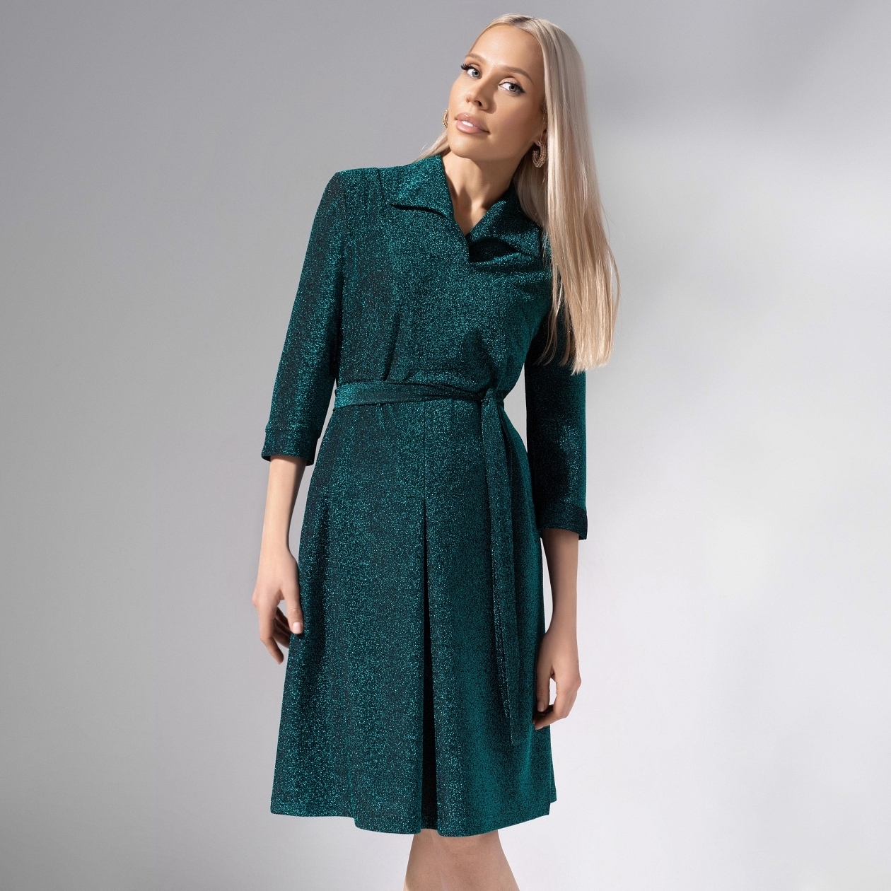 Единственный вывод, который ты делаешь, выходя из сложных ситуаций, – сияние не нужно откладывать на потом. В любом дне есть место блеску. А иногда твой мерцающий образ – база настроения на весь день. Платье прямого силуэта в длине миди. Есть пояс в тон изделия в комплекте. Отвороты на рукавах с разрезами.