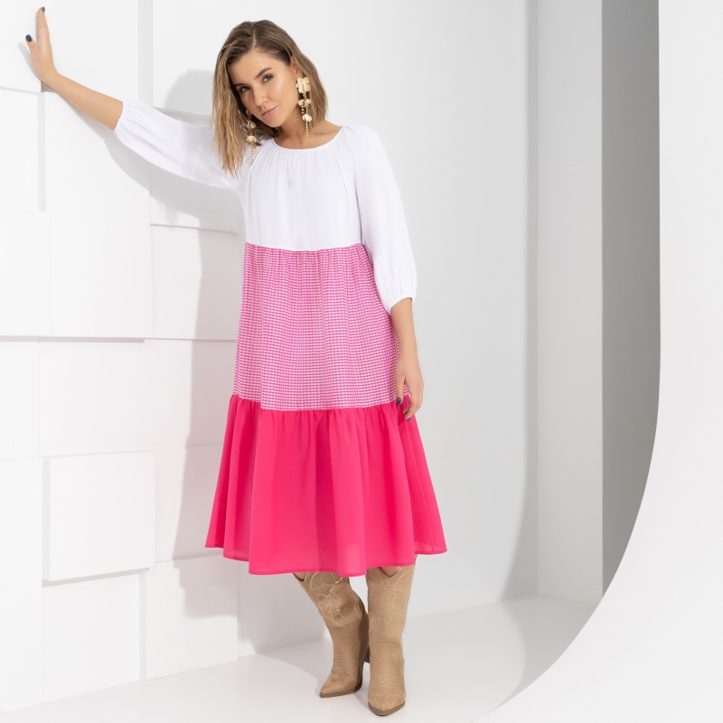 Наши стилисты в CHARUTTI единогласно очарованы этой моделью: она станет идеальным решением для любого праздника, вечеринки или корпоративного мероприятия. Взглянув на это платье, вы сможете заметить, как его дизайнерские изыски подчеркнут вашу фигуру и ваше обаяние. Если вы выбираете покупки оптом – это платье раскроет для вас все возможности в моде. Благодаря универсальному крою и разнообразию сочетаний цветовых блоков, оно будет уместно в самых различных контекстах, от торжественных вечерних выходов до непринужденных мероприятий.