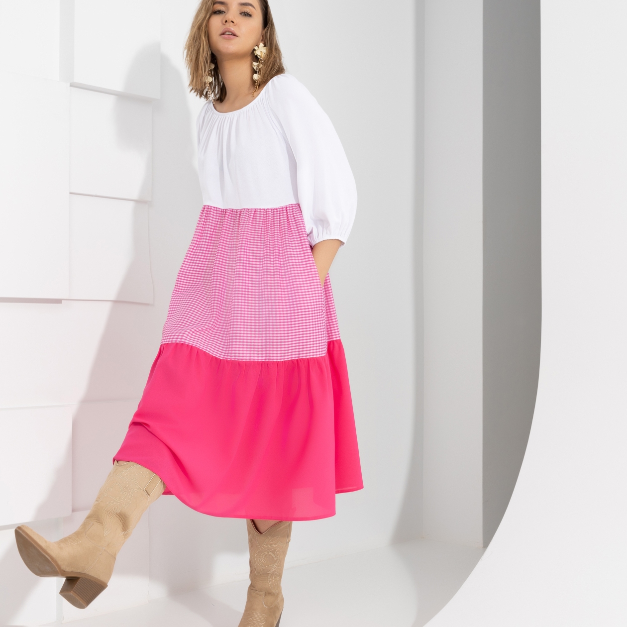 Наши стилисты в CHARUTTI единогласно очарованы этой моделью: она станет идеальным решением для любого праздника, вечеринки или корпоративного мероприятия. Взглянув на это платье, вы сможете заметить, как его дизайнерские изыски подчеркнут вашу фигуру и ваше обаяние. Если вы выбираете покупки оптом – это платье раскроет для вас все возможности в моде. Благодаря универсальному крою и разнообразию сочетаний цветовых блоков, оно будет уместно в самых различных контекстах, от торжественных вечерних выходов до непринужденных мероприятий.