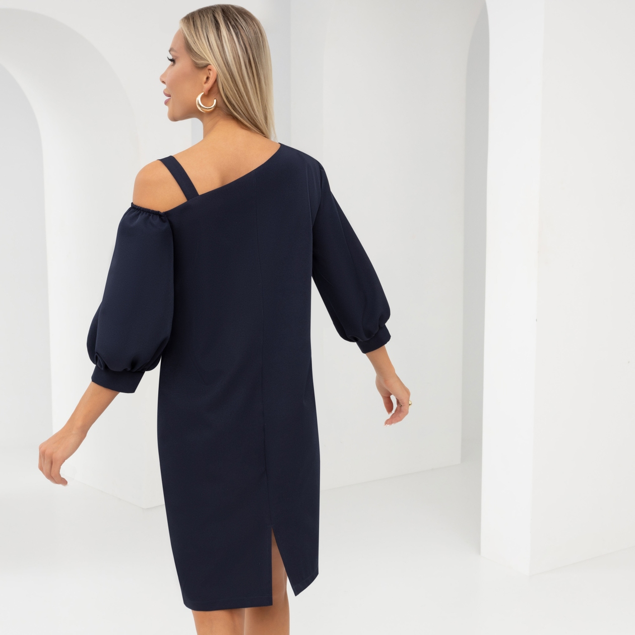 Платье «Тайна шикарной красотки (дарк блю)» — это яркий акцент вашей гардеробной палитры. Приобретая его оптом, вы входите в мир утонченного стиля и неподражаемой элегантности. Роскошная ткань «пикачу» обволакивает тело как шелковый плащ, создавая ощущение легкости и шика. Восхитительные детали — от обнаженного плеча до объемного рукава 3/4 — превращают каждое появление в этом платье в подиумное шоу. Каждая покупка оптом создает уникальную возможность предложить клиентам образы, с которыми всё внимание окажется прикованным к их персонам. Это платье станет жемчужиной любой коллекции, добавляя нотки аристократизма и величия.