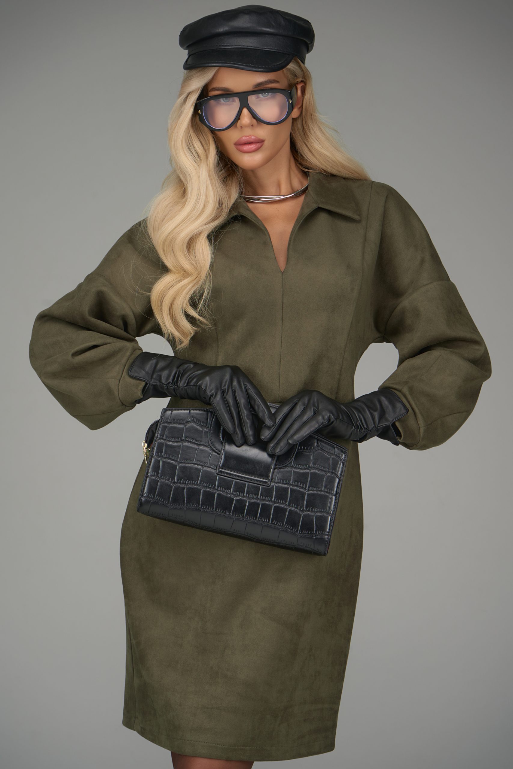 Элегантное платье прямого кроя — универсальная вещь для вашего гардероба. Платье выполнено из мягкой искусственной замши премиального качества — материал приятный на ощупь, бархатистый, хорошо держит форму и выглядит дорого. Замша не мнётся, устойчива к износу и долго сохраняет аккуратный вид, что делает изделие практичным в носке.
