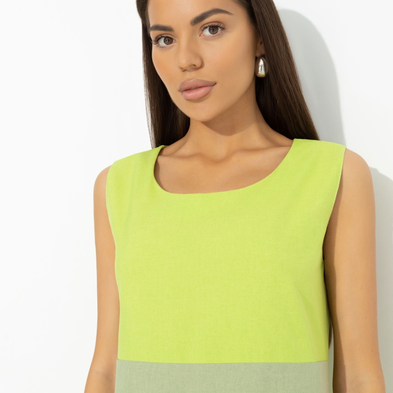 Платье в стиле color block «Деликатная смелость» – это ваша возможность выразить уникальность и стиль, оставаясь в тренде. Этот невероятно универсальный наряд идеально подходит для вечерних мероприятий и деловых встреч. Представьте себя на летнем вечере, где каждый элемент вашего образа – от нежных зеленых и бежевых оттенков до изысканного материала – подчеркивает вашу индивидуальность. Отсутствие рукавов и прямой силуэт делают это вечернее платье женское незаменимым спутником в жаркие дни, а длина до колена добавляет элегантности и позволяет чувствовать себя уверенно в любой ситуации. Если вы ищете платье женское больших размеров, которое идеально подойдет для любого случая, то это – ваш идеальный выбор.