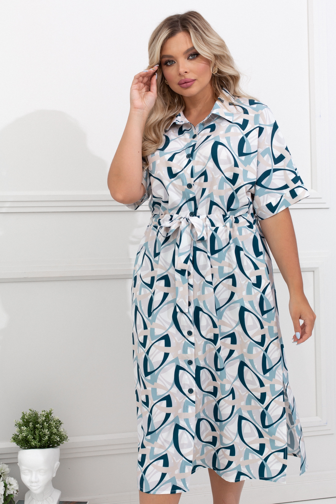 Легкое платье приталенного силуэта. Короткий цельнокроенный рукав с притачной манжетой. Горловина оформлена отложным воротником на стойке переходящим в планку с застежкой на петли и пуговицы. Модель отрезная по линии талии, дополнена кулиской. В боковых швах функциональные карманы. Низ ровный, по бокам разрезы.