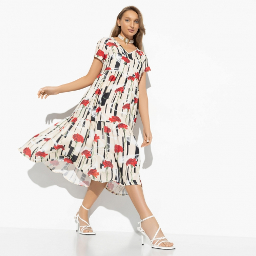 Роковая Софи Марсо обожала в своих нарядах две вещи – красный и горох. Платье CHARUTTI, словно воплощение идеальных образов из старого кино. Помните, что у вас главная роль в фильме под названием «Моя прекрасная жизнь». Платье свободного кроя. Квадратный вырез, рукава оформлены резинками. Положение линии плеч регулируется.