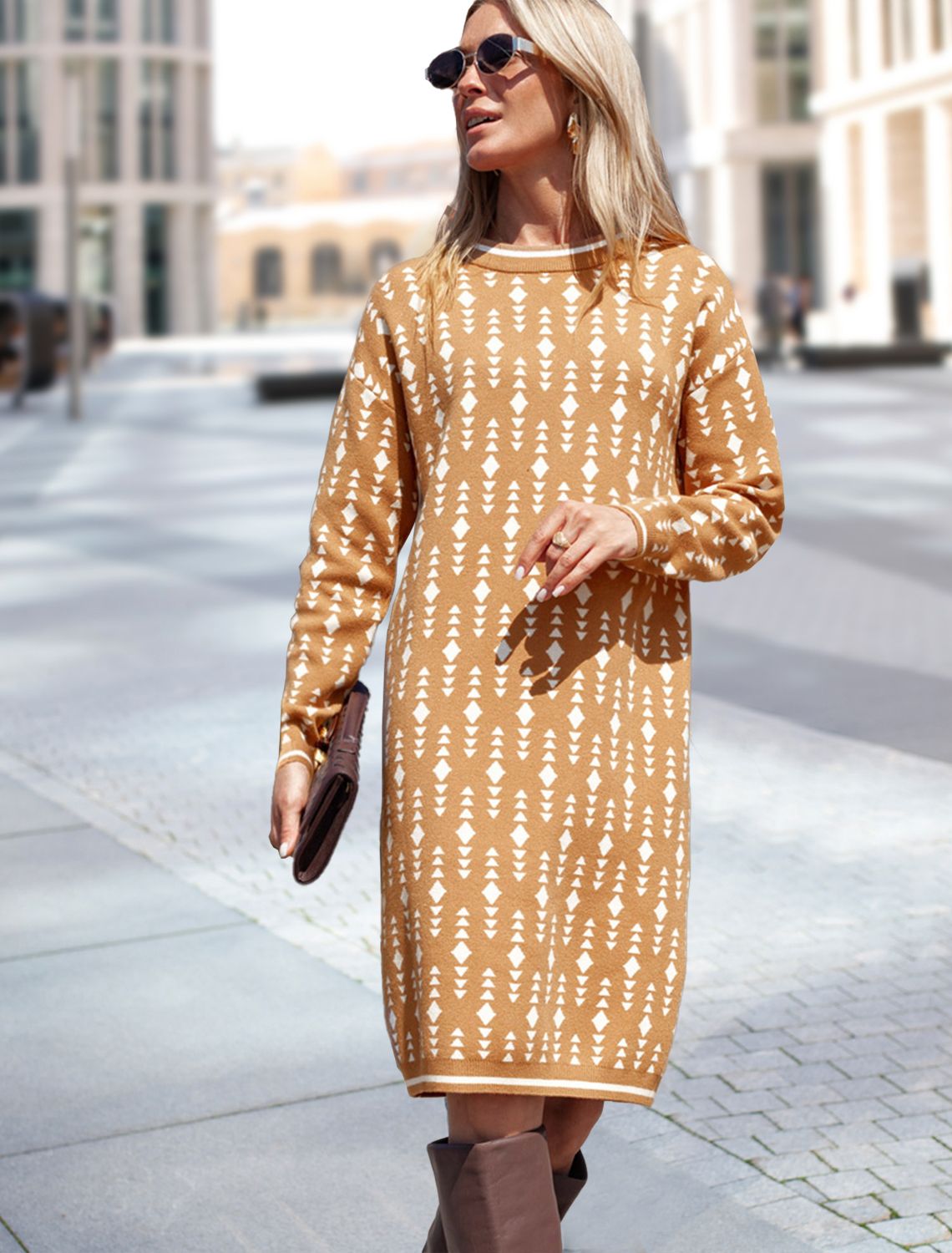 Платье жаккардовой вязки выполнено из мягкой пряжи на основе вискозы с добавлением кашемира. Модель свободного силуэта подходит для любой фигуры. Нежная пряжа очень комфортно ощущается на теле, сохраняя оптимальное тепло при этом не перегревая. Совет стилиста: жаккардовое платье отличная инвестиция в базовый гардероб, которая поможет создать дорогие образы. Носите с высокими сапогами удлиняя силуэт или плотными колготками. 50%Вис 20%ПА 20%ПЭ 10%Кашемир